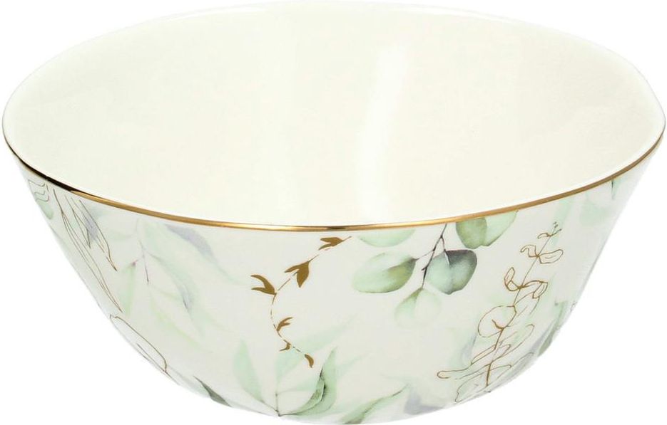Miska porcelanowa z roślinnym printem i rantem w złotym kolorze. Miska z porcelany to wspaniała propozycja dla ceniących serwowanie ciepłych posiłków w efektowny sposób. Subtelne wzornictwo i delikatne zdobiony rant sprawia, że porcelana idealnie sprawdzi się jako głęboki talerz na owoce lub inne ulubione smakołyki. Porcelanowa miska Fiori doskonale sprawdzi się z innymi produktami tej serii, dzięki którym stworzysz swój własny, niepowtarzalny zestaw naczyń. Produktu nie należy stosować w zmywarce i kuchence mikrofalowej. Wymiary: śr. 16 cm, wys. 7,5 cm.Pojemność: 500 ml.