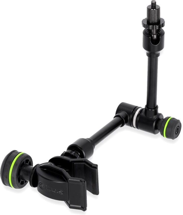 Gravity MA VARIARM M 38 Uniwersalne ramię obrotowe z centralnym mechanizmem blokującym - 3/8" Medium Ramię obrotowe umożliwiające swobodne umieszczenie sprzętu Solidna stalowa konstrukcja Jedna główna śruba regulacyjna do luzowania i dokręcania wszystkich połączeń 2 x gwint 3/8" Solidny zacisk montażowy o dużym zakresie mocowania (15-35 mm) W komplecie adapter redukcyjny 1/4" Dla muzyków występujących na żywo i w studio, kamerzystów, podcasterów, YouTuberów i innych. W przeszlosci, jezeli chcieli Panstwo profesjonalnie produkowac muzyke, filmy lub inne tresci, trzeba bylo udac sie do specjalistycznych studiów. Dzisiaj podcasty i filmy na YouTube dla milionów fanów a nawet albumy z miedzynarodowymi przebojami sa nagrywane w domu lub spontanicznie w drodze. To juz nie wymaga tak wielu zabiegów. Wazne jest jednak, aby towarzyszacy temu sprzet byl jak najbardziej elastyczny i dobrze przemyslany. Dzieki VARI®-ARM M 38 marka Gravity® stworzyla uniwersalne narzedzie, które pozwala w ciagu kilku sekund wykorzystac róznorodny sprzet - od mikrofonu zaciskowego po tablet lub kamere akcji - prawie wszedzie i na kazdym kierunku. VARI®-ARM M 38 to innowacyjne ramie montazowe z trzema przegubami, które pozwalaja na swobodne i precyzyjne przemieszczanie sprzetu w dowolne miejsce. Jego glówna cecha: Do zablokowania i odblokowania wszystkich trzech przegubów potrzebna jest tylko jedna sruba regulacyjna. Gdy tylko znajda Panstwo pozadana pozycje, dokrecacie srube blokujaca i pozycja VARI®- ARM M 38 jest utrzymywana mocno i bezpiecznie. Dzieki 3-kilogramowemu udzwigowi mozna zamocowac nawet kamere DSLM ze standardowym obiektywem lub ciezki mikrofon, taki jak klasyczny mikrofon broadcastowy RE-20. Na glowicy VARI®-ARM zintegrowany zostal gwint 3/8", na którym mozna przykrecic klips mikrofonowy, pop filtr i inne. Dolaczony adapter (gwint redukcyjny 3/8" do 1/4") daje Panstwu pelna elastycznosc, dzieki czemu z VARI®- ARM M 38 moga Panstwo korzystac z prawie kazdego dostepnego na rynku uchwytu do kamer, recznych rejestratorów lub smartfonów. Dzieki solidnemu zaciskowi w dolnej czesci VARI®-ARM i duzemu zakresowi mocowania od 15 do 35 mm, VARI®-ARM mozna równiez latwo przymocowac do wiekszosci stolów i rurek (np. do statywów). Jako uniwersalne narzedzie do realizacji kreatywnych celów, mozliwosci wykorzystania VARI®-ARM M 38 sa praktycznie nieograniczone. Rodzaj produktu Akcesoria do mikrofonów Typ Vari-Arm Materiał stal Kolor Czarny Długość ramienia (bez zacisku) 270 mm Montaż Statyw mikrofonowy Złącze gwintowane 3/8” Nadaje się do rurek o średnicy do 15 mm - 35 mm Wymienne pierścienie 1 x 15 mm, 1 x 25 mm W zestawie komplet czarnych pierścieni tak Wymiary (dł. x wys. x szer.) 335 x 103 x 40 mm Waga 0,45 kg