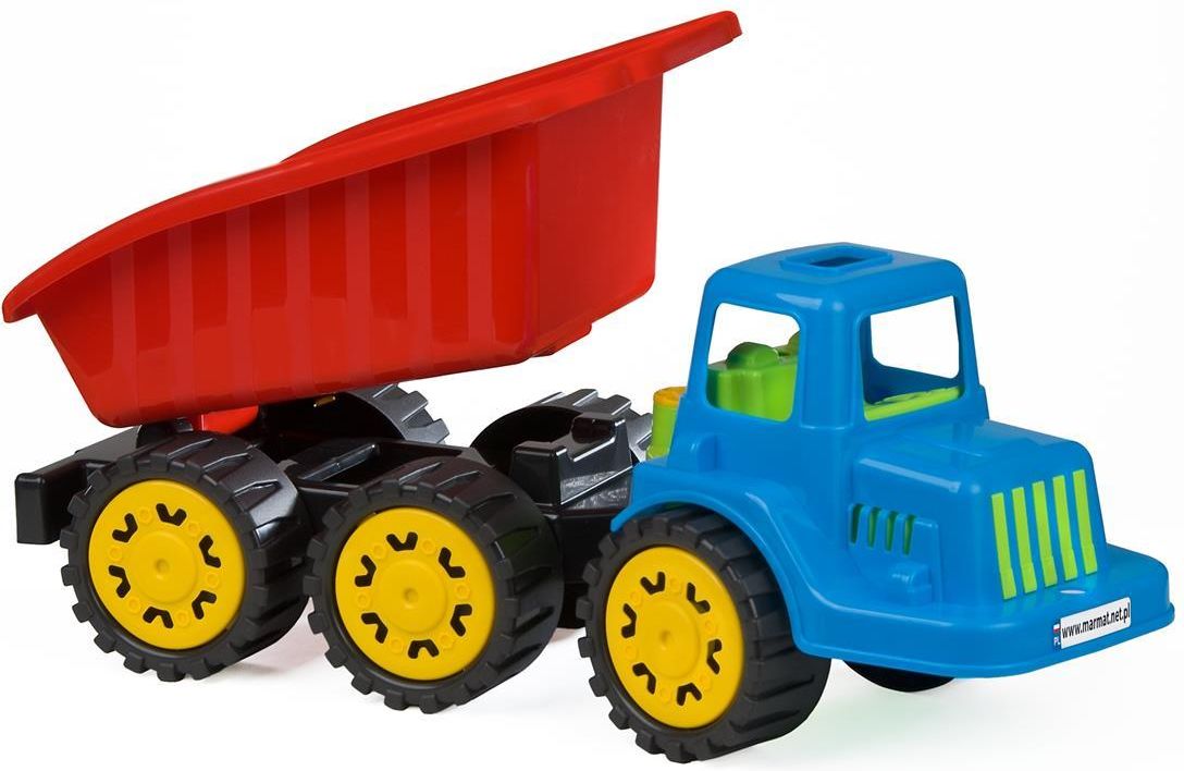 Samochód wywrotka S posiada skrętna oś przednią i ruchomy kiper. Przeznaczona dla dzieci od 2 lat. Rozmiar: 19 x 48,5 x 20