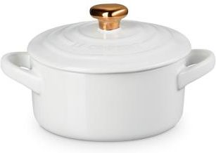 Le Creuset - Mini-Cocotte 10 cm ze złotą gałką serce White To urocze naczynie mini cocotte idealnie nadaje się do przygotowywania i podawania pojedynczych porcji lub małych przystawek. Goście pokochają jej mały rozmiar i ciekawy wygląd. Świetnie nada się również do Twoich ulubionych dipów, przypraw …