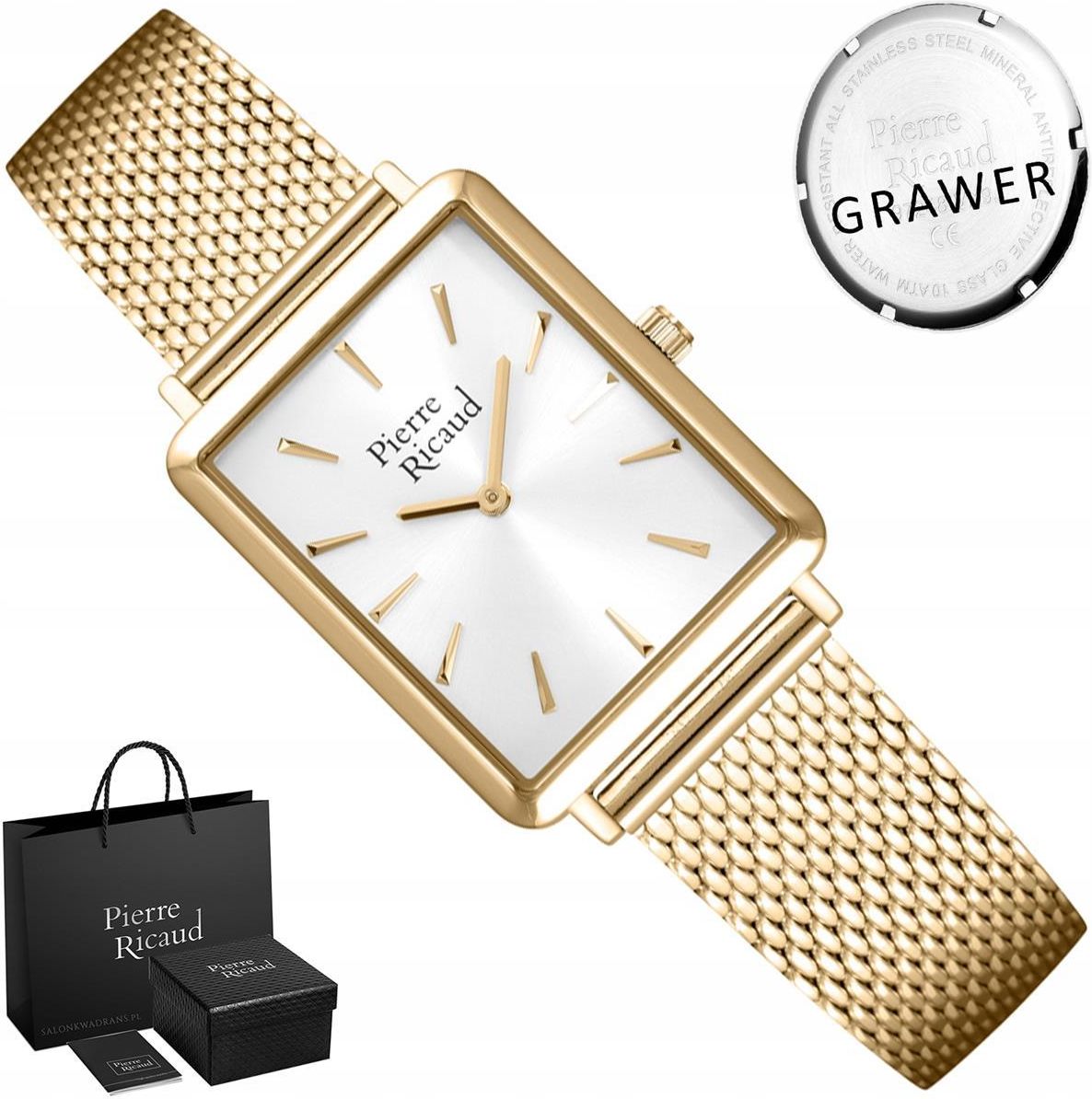 ZEGAREK DAMSKI Pierre Ricaud ZŁOTY MESHOWA BRANSOLETA PROSTOKĄTNY + GRAWER ⌚️ Pierre Ricaud P22111.1113Q Ten model Pierre Ricaud napędza klasyczny kwarcowy mechanizm Espson VJ20 zasilany baterią. Zegarek marki Pierre Ricaud, odznacza się jakością, nowoczesnym designem i znakomitą prezencją. Srebrną, minimalistyczną tarczę wskazówkową zabezpiecza mineralne szkło, zapewniając zegarkowi odporność na uderzenia. Zegarek zdobią, wykonane ze stali szlachetnej, koperta i bransoleta typu mesh, obie w złotym kolorze. Klasa wodoszczelności 3 ATM uodparnia zegarek na zachlapanie oraz podwyższony poziom wilgoci. Ten zegarek będzie wiernie towarzyszyć Ci na co dzień, a wieczorami doda klasy i elegancji Twojej formalnej kreacji. Marka: Pierre Ricaud Model: P22111.1113Q Mechanizm: Kwarcowy Dla kogo: Damski Rodzaj koperty: Stal szlachetna Szerokość koperty: 25mm Grubość koperty: 6mm Pasek/Bransoleta: Stal szlachetna Szkiełko: Mineralne Wodoszczelność: 3 ATM ✅ Oryginalne pudełko Pierre Ricaud + torebka ✅ Karta gwarancyjna - 2 lata ✅ Instrukcja w języku polskim ✅ MOŻLIWOŚĆ GRAWERU SZCZEGÓŁY PONIŻEJ ⤵ GRAWEROWANIE za 1zł Przy zakupie zegarka, warto rozważyć opcję grawerowania. Dzięki temu można w piękny i unikalny sposób spersonalizować wybrany zegarek, czy to dla siebie, czy dla kogoś innego. To doskonały sposób, aby przekazać myśli, życzenia lub wyrazić najgłębsze emocje. Grawer na zegarku prezentuje się bardzo efektownie i stanowi trwałą i wyjątkową pamiątkę. WAŻNE INFORMACJE: Czas realizacji graweru wynosi od 1 do 3 dni roboczych. Produkty z grawerowaniem nie podlegają zwrotowi. Zamówienia z usługą grawerowania wymagają przedpłaty. Po wpisaniu tekstu upewnij się, czy jest on poprawny. Grawer wykonywany metodą laserową. Nie wszystkie modele mają wystarczająco dużo miejsca na indywidualne grawerowanie – w takich przypadkach można spodziewać się kontaktu z naszej strony. Grawer wykonujemy tylko przy zamówieniach "Kup razem" Treść graweru należy umieścić w polu "Uwagi do zakupu", które pojawia się przy składaniu zamówienia.
