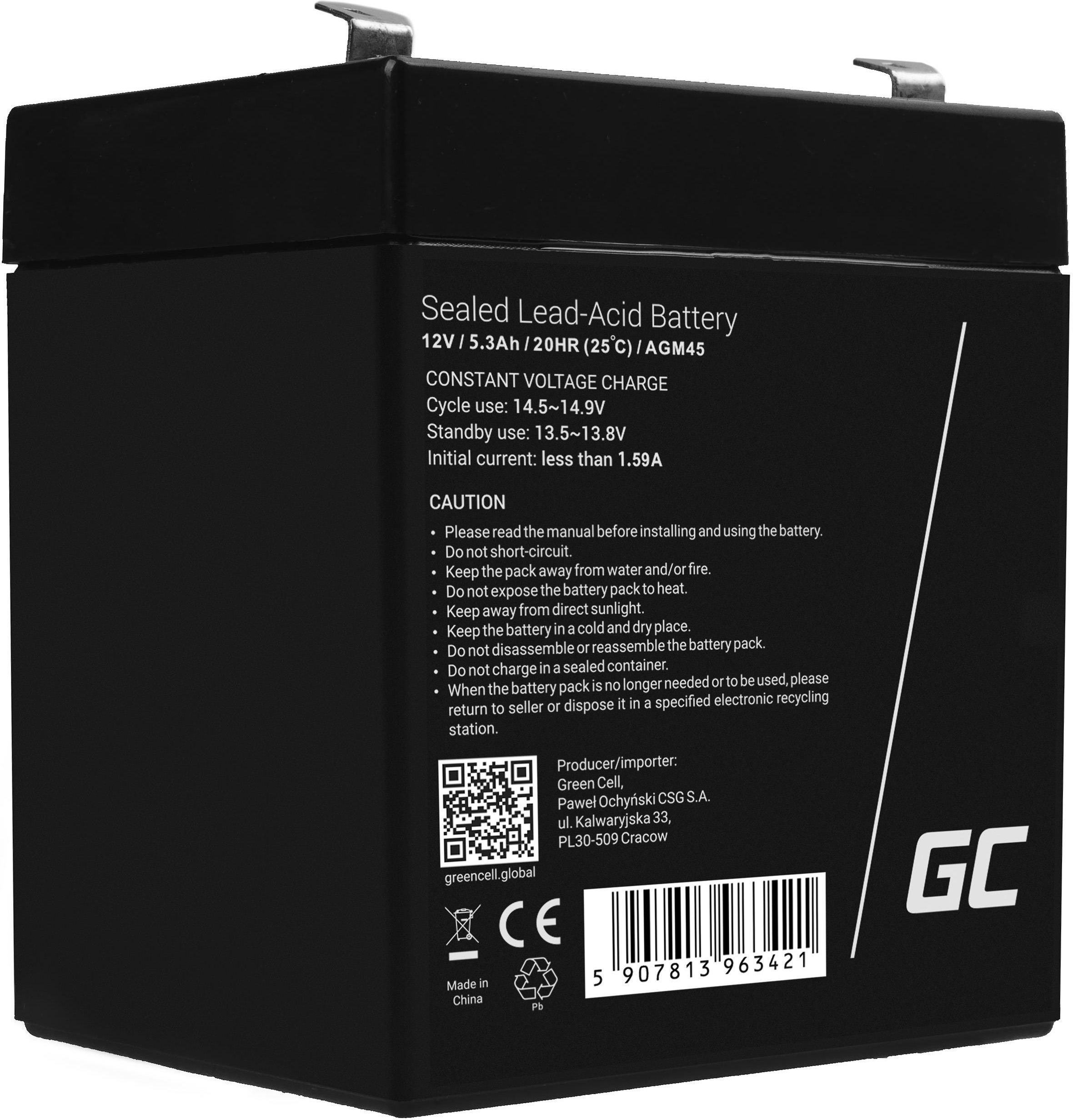 GREEN CELL AKUMULATOR BEZOBSŁUGOWY AGM VRLA 12V 5.3AH DO SYSTEMÓW ALARMOWYCH I ZABAWEK Szczebrzeszyn