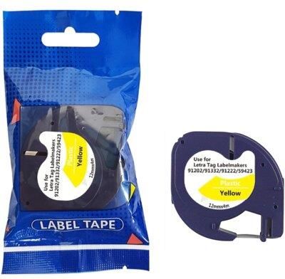 Taśma PRISM do Dymo LT 59423 12 mm x 4 m to przezroczysta, poliestrowa taśma z czarnym nadrukiem na żółtym tle i usuwalnym klejem, przeznaczona do drukarek LetraTAG (100H, 100T, 2000, QX50), odporna na rozdarcie i ścieranie, idealna do oznaczania płaskich oraz lekko zakrzywionych powierzchni w domu.
