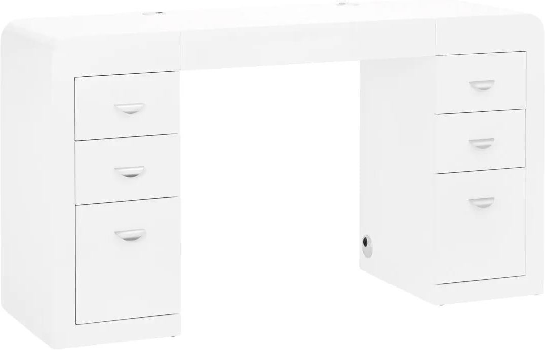 Marka ACTIVESHOP od wielu lat oferuje szeroką gamę produktów, które sprawdzają się w profesjonalnym użytku w wielu branżach. W dostępnym asortymencie można znaleźć artykuły z różnych kategorii, od drobnych, niezbędnych akcesoriów, po specjalistyczne wyposażenie. Praktyczne stanowisko kosmetyczne Funkcjonalne biurko kosmetyczne 314 doskonale sprawdza się w salonach kosmetycznych, zapewniając wygodną przestrzeń do pracy. Solidna konstrukcja mebla gwarantuje stabilność, a pojemne szuflady zostały odpowiednio zaprojektowane, aby ułatwić dostęp do niezbędnych narzędzi, co przekłada się na efektywność pracy. Prosty design nadaje mu profesjonalnego charakteru. Doskonałe miejsce pracy o eleganckim wyglądzie Szafki po obu stronach z trzema pojemnymi szufladami znacznie ułatwiają organizację oraz utrzymanie porządku w najpotrzebniejszych kosmetykach i narzędziach. Dzięki temu niezbędne produkty zawsze znajdują się pod ręką, co przekłada się na efektywność pracy. Biurko ma specjalne otwory w blacie do przeprowadzania kabli od niezbędnych urządzeń, co pozwala na łatwe utrzymanie porządku i estetyki stanowiska pracy. Prosty design dla pełni funkcjonalności Estetyczny wygląd nadaje ponadczasowej elegancji biurku, które jest doskonałym dodatkiem do każdego profesjonalnego wnętrza. Zastosowane materiały wysokiej jakości nadają meblowi nowoczesny wygląd, zapewniając jednocześnie trwałość oraz łatwość czyszczenia. Minimalistyczna forma sprawia, że biurko nie tylko ułatwia przechowywanie produktów i akcesoriów, ale także stanowi estetyczny element, który podkreśla prostotę i elegancję przestrzeni salonów kosmetycznych. Kolor: odcienie bieliWymiary: 145x80x48 cm