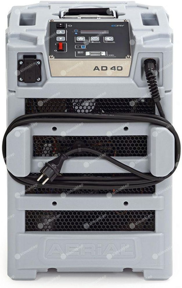 Osuszacz kondensacyjny Aerial AD 40 ze zbiornikiem o pojemności 6,8 litrów. Aerial AD 40 osuszacz powietrza posiada hermetycznie zamkniętą sprężarkę rotacyjną.