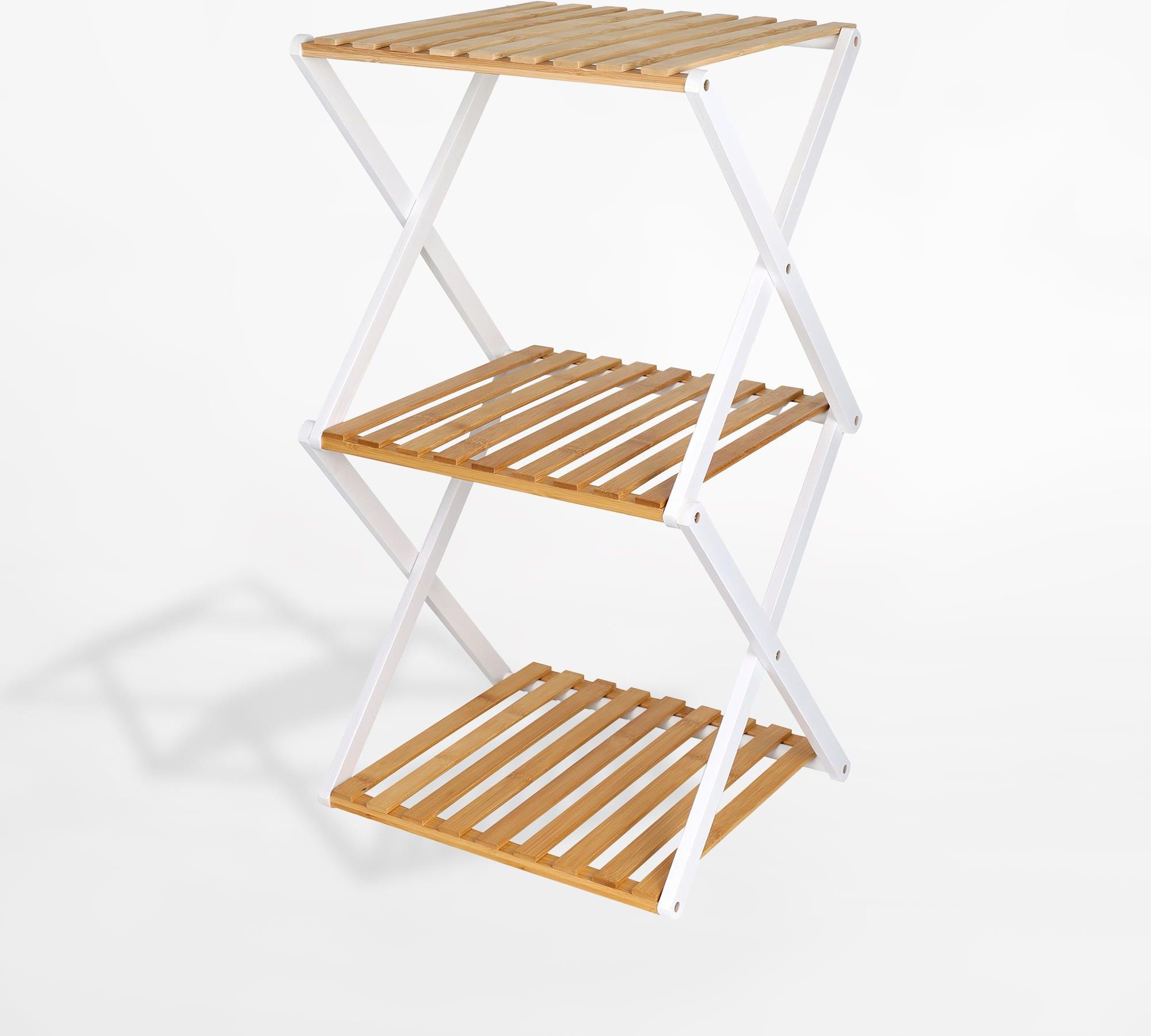 Rozkładana półka z naturalnego bambusa to ekologiczny i estetyczny dodatek do każdego wnętrza. Ma 3 poziomy i wysokość 67 cm – nadaje się do łazienki na ręczniki i kosmetyki czy też do salonu na rośliny doniczkowe i dekoracje. Dzięki swojej lekkości i wytrzymałości może być łatwo przenoszona i ustawiana tam, gdzie jest najbardziej potrzebna. Naturalne drewno bambusowe dodaje wnętrzu przytulności, a składana konstrukcja ułatwia przechowywanie lub zmianę aranżacji.