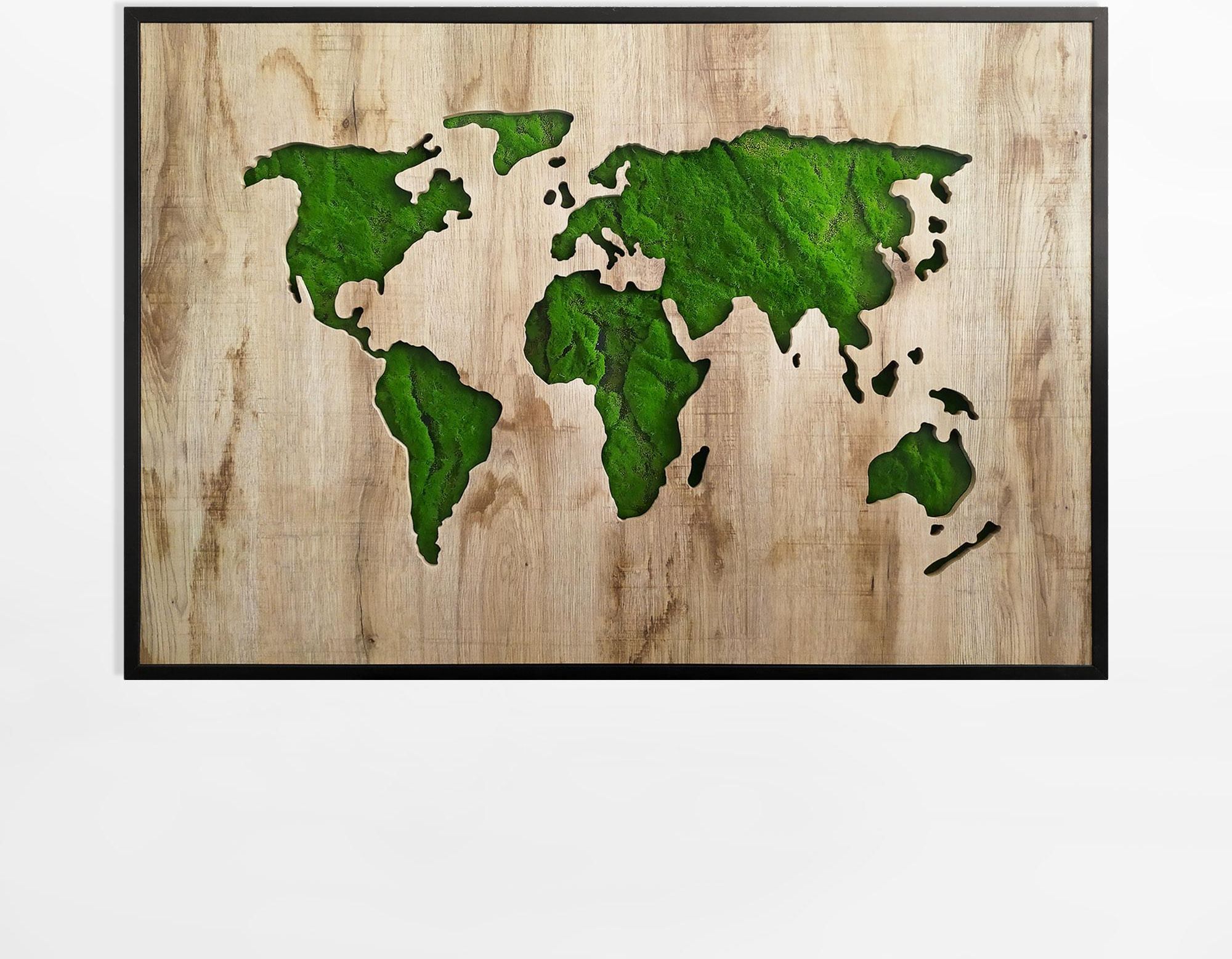 Nowoczesny obraz GREEN MAP to symboliczny, podróżniczy manifest. Ma naturalny wygląd, Uatrakcyjni aranżację i przyciągnie uwagę gości. Zielone kontynenty są wykonane ze sztucznego mchu. Dla tych, którzy kochają podróże, ale też powroty do siebie.