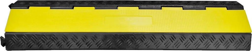 Próg kablowy Próg kablowy z dwoma kanałami kablowymi. Chroń przewody i węże przed ruchem drogowym i zadeptywaniem! Odporny na zużycie próg kablowy marki Anslut jest wyposażony w dwa kanały kablowe i można go łączyć z innymi, aby wyposażyć duży obszar. Dwa kanały kablowe Osłona mieści w sobie dwa oddzielne kanały kablowe, do których dostęp zapewnia od góry rozkładana klapa. Wymiary kanałów wynoszą 4 x 3 x 100 cm, a maksymalna średnica węży to 3 cm. Wytrzymałość na duże obciążenia Dzięki solidnemu wykonaniu osłona wytrzymuje do 3 t na punkt obciążenia. Można połączyć kilka osłon Łatwo wyposażysz większy obszar poprzez połączenie kilku progów jeden za drugim. Specyfikacja techniczna Gwarancja (w miesiącach): 12 m. Wymiary: Dł. 100 x szer. 25 x wys. 5 cm Waga: 6,5 kg
