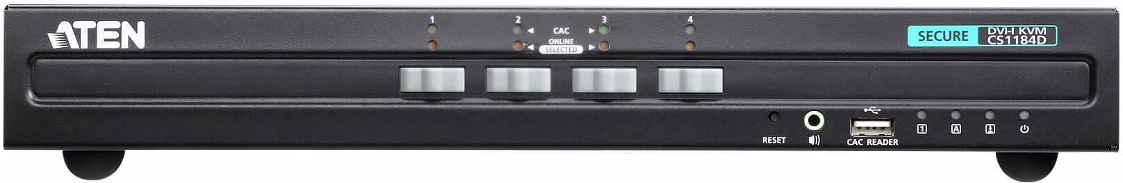 Przełącznik ATEN Secure KVM PSS PP v3.0 (CS1184D) zapewnia izolację pomiędzy źródłami komputerowymi i urządzeniami peryferyjnymi przy jednoczesnym współdzieleniu jednej klawiatury, myszy, monitora, zestawu głośnikowego i czytnika Common Access Card (CAC) pomiędzy podłączonymi komputerami o różnych klasyfikacjach zabezpieczeń. Zgodność z PSS PP v3.0 zapewnia możliwość udostępniania urządzeń peryferyjnych, zapewniając maksymalne bezpieczeństwo danych użytkownika podczas przełączania fokusu portu, zapobiegając nieautoryzowanemu przepływowi danych lub przeciekom między podłączonymi źródłami. Kluczowe zabezpieczenia obejmują izolację i jednokierunkowy przepływ danych, ograniczoną łączność i filtrowanie urządzeń peryferyjnych, ochronę danych użytkownika, konfigurowalne filtrowanie i zarządzanie urządzeniami oraz konstrukcję zabezpieczającą przed ingerencją osób niepowołanych, izolowanie wrażliwych zasobów i zapewnienie zaawansowanego bezpieczeństwa oraz przyjazną dla użytkownika konstrukcję umożliwiającą natychmiastowe bezpieczne wdrożenie. Dzięki wielowarstwowym zabezpieczeniom przełącznik ATEN Secure KVM PSS PP v3.0 (CS1184D) zapewnia wysoki poziom bezpieczeństwa komputerów stacjonarnych i ochrony danych w takich zastosowaniach, jak agencje rządowe, finanse i inne organizacje, które często obsługują dane wrażliwe lub poufne w odrębnych sieciach. Uwaga: *Bezpieczne przełączniki KVM DVI oferują wyjście wideo 3840 x 2160 @ 30 Hz na kompatybilnych monitorach/komputerach z interfejsem HDMI z przewodami KVM DVI-HDMI ATEN.