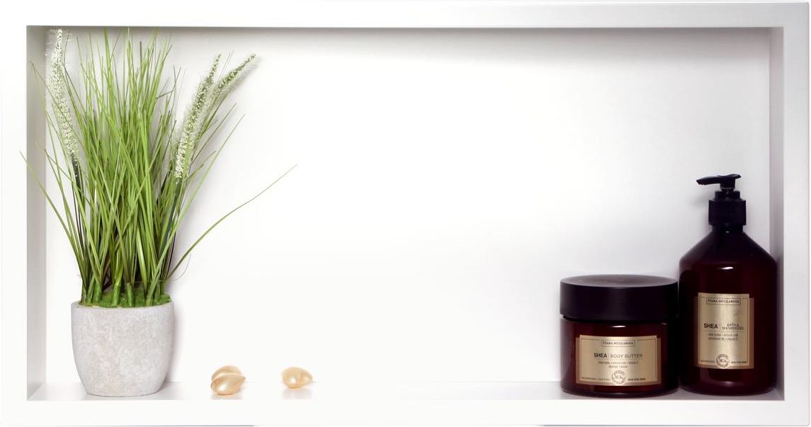 Zaprojektowane z myślą o Twojej łazience, nasze wodoszczelne półki wnękowe to doskonałe rozwiązanie dla każdego, kto szuka dodatkowej przestrzeni do przechowywania. Wodoszczelność półek czyni je idealnymi do umieszczenia pod prysznicem. Dzięki temu zyskasz dodatkowe miejsce na kosmetyki i inne akcesoria łazienkowe. Wysokiej jakości materiały i solidne wykonanie sprawiają, że nasze półki są trwałe i łatwe w utrzymaniu, co oznacza, że będą służyć Ci przez lata. Praktyczność i elegancja Półki wnękowe WALL-BOX pozwalają uporządkować przestrzeń w łazience i nadają jej nowoczesnego designu. Na łatwo dostępnych półkach można ustawić kosmetyki, perfumy a w kabinie prysznicowej – szampony, żele i inne artykuły kąpielowe. Półki linii WALL-BOX można także wykorzystać aranżując przestrzeń np. w sypialni w miejscu szafek nocnych – na podręczne drobiazgi, kuchni – na przyprawy, czy jako wnęki na elementy dekoracyjne w salonie. WALL-BOX ONE można zamontować w większości ścian lub wnęk. Kołnierz otaczający WALL-BOX ONE jest dodatkową ozdobą, ale także ukrywa przycięte krawędzie glazury i stanowi elegancką ramę. Innowacyjność WALL-BOX W łazienkach często możemy spotkać zastosowanie koszyków łazienkowych, które zazwyczaj wykonane są z materiałów niskiej jakości, są mało estetyczne, ograniczają miejsce w kabinie oraz bardzo często korodują. Stosuje się również półki wnękowe wykonane z płyt gipsowo-kartonowych jednak takie płyty nie są materiałem dedykowanym do wykonywania półek wnękowych, a w szczególności tam gdzie mamy do czynienia z bardzo dużą wilgotnością (np: kabina prysznicowa). Półki wykonane z płyt g/k nie są wodoszczelne, co może powodować przeciekanie wody do wnętrza ściany poprzez wypłukujące się fugi. Wykonywanie tego typu półek jest bardzo kosztowne, problematyczne oraz pracochłonne. Wybierz nowoczesne rozwiązanie do swojej łazienki. Półki WALL-BOX są: wykonane z wysokiej jakości stali nierdzewnej, która charakteryzuje się doskonałymi właściwościami antykorozyjnymi wodoszczelne dzięki czemu idealnie sprawdzą się pod prysznicem łatwe w montażu mają spad 1% dzięki czemu przy zastosowaniu pod prysznicem woda nie stoi w półce dostępne w wielu kolorach i rozmiarach, dzięki czemu idealnie dopasujesz półkę do swoich potrzeb i wystroju wnętrza WALL-BOX ONE pozwala uporządkować przestrzeń w łazience i nada jej nowoczesnego designu. Niezależnie od tego czy w kolorze ponadczasowej, neutralnej stali nierdzewnej, subtelnej złamanej bieli, eleganckiego złota bądź miedzi, czy też w wyjątkowej, stylowej czerni – nada łazience efektu nowoczesności i schludności. Na łatwo dostępnych półkach można ustawić kosmetyki, perfumy a w kabinie prysznicowej – szampony, żele i inne artykuły łazienkowe. Półki linii WALL-BOX ONE można także wykorzystać aranżując przestrzeń np. w sypialni w miejscu szafek nocnych – na podręczne drobiazgi, kuchni – na przyprawy, czy jako wnęki na elementy dekoracyjne w salonie.