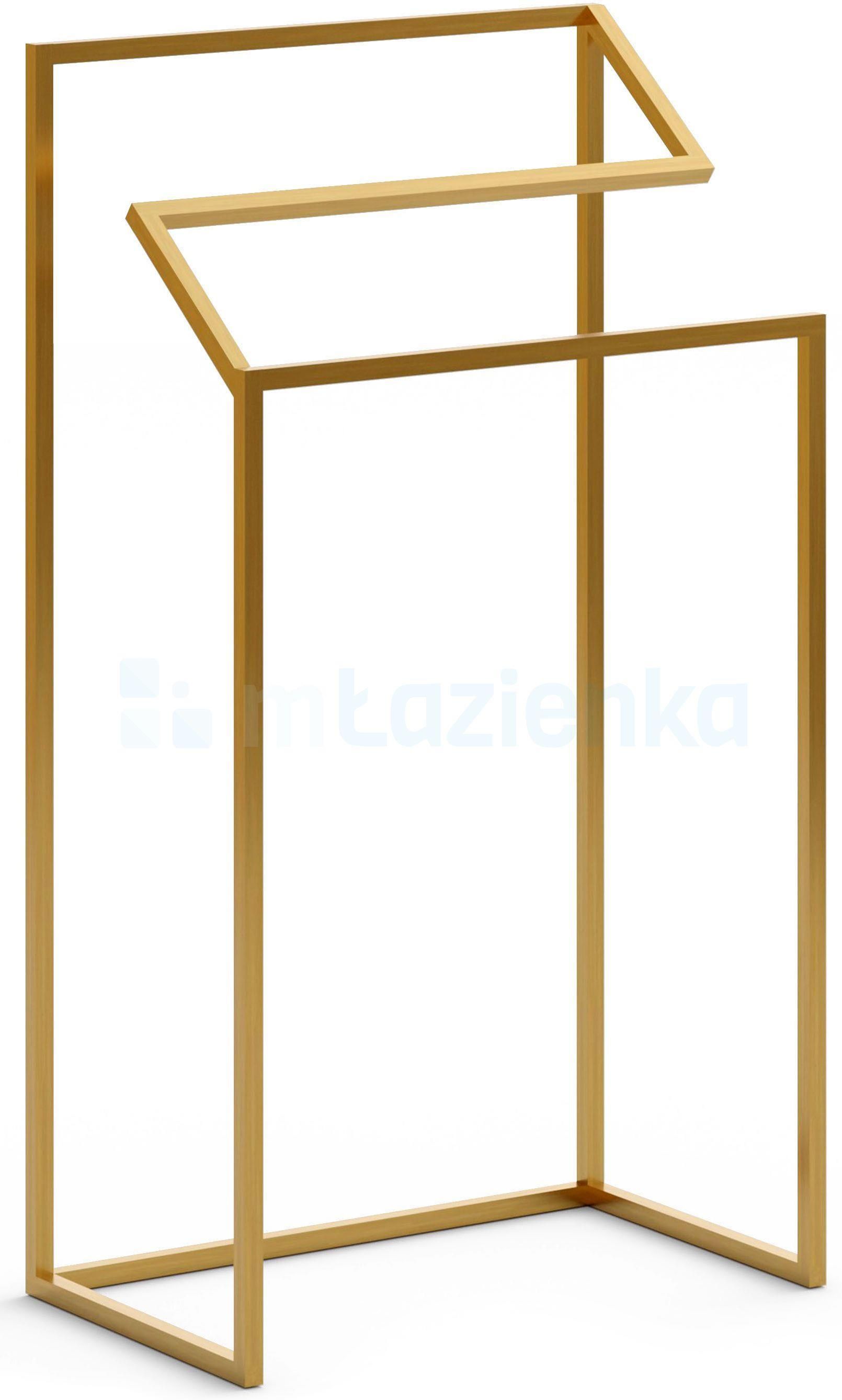Designerski wieszak na ręczniki LM-02 stojący w stylu glamourNowoczesny stojący wieszak na ręczniki LM-02 to niezwykle oryginalny wieszak łazienkowy, który wykonany jest w całości ze stalowych profili pomalowanych proszkowo na kolor złoty, dzięki czemu jest przystosowany do użytkowania w łazience, gdyż malowanie proszkowe zabezpiecza przed działaniem wilgoci. Wytrzymała konstrukcja i staranne wykonanie ze stali powoduje, że będziemy mogli cieszyć się nim przez długi czas. Wieszak na ręczniki LM-02 charakteryzuje niebanalny design dostosowany do współczesnych aranżacji wnętrz w stylu glamour. Niezwykle użyteczny i funkcjonalny stojak na ręczniki będzie elegancką ozdobą każdego wnętrza, podkreślając jego styl. Wieszak na ręczniki jest lekki, więc z łatwością można go przestawiać w dowolne miejsce.Cechy produktułazienkowy wieszak na ręczniki,wykonany ze stalowych profili,malowany metodą proszkową na kolor złoty półmat,wysoka wytrzymałość,staranne wykonanie,oryginalny design,bezproblemowy zwrot do 30 dni,w swojej ofercie posiadamy szeroki wybór mebli pozwalających na kompleksowe wyposażenie mieszkania.