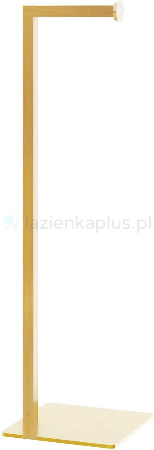 Stylowe akcesoria do łazienki - stojak na papier toaletowy metalowy w złotym kolorze Nowoczesny stojak na papier, wykonany ze stali. Produkt nie wymaga samodzielnego montażu, cała jego konstrukcja jest spawana, dzięki czemu stojak jest stabilny i trwały w użytkowaniu. Dzięki minimalistycznemu wykonaniu, doskonale wpasuje się w styl niemal każdej łazienki, nie tylko w domu, ale także hotelu czy salonie kosmetycznym. Produkt został niezwykle precyzyjnie wykonany, a malowanie proszkowe, zabezpiecza go przed korozją. Szczegóły: wymiary 20x20x72 cm kolory: czarny i złoty z miejscem na szczotkę materiał: stal