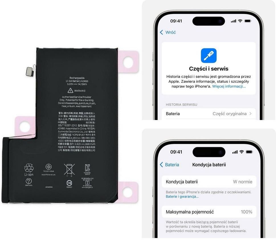 Bateria A2466 "Diagnosable" do Apple iPhone 12 Pro Max Najnowsza wersja baterii "Diagnosable" z możliwością z możliwością przypisania jako oryginał do danego iPhone'a Dedykowany model iPhone 12 Pro Max (6.7") A2342 / A2410 / A2411 / A2412 Numer modelu baterii: A2466 Pojemność: 3687mAh Typ akumulatora: Litowo-jonowy Wersja baterii: Diagnosable Wyświetlana kondycja / Battery Health: Tak (od iOS 18.1) Wyświetlana informacja o oryginalnej baterii: Tak (od iOS 18.4)* Stan: Fabrycznie nowy (0 cykli ładowania) Zestaw zawiera 1x Kompletna bateria "Diagnosable" 1x Komplet taśm montażowych Opis i cechy produktu Najnowsza seria baterii "Diagnosable" z możliwością z możliwością skonfigurowania jako oryginał do danego iPhone'a Brak potrzeby rozbierania, przenoszenia BMS, lutowania, zgrzewania, programowania aby pozbyć się komunikatu o nieznanej części Wystarczy zamontować baterię oraz przejść proces konfiguracji w ustawieniach, po czym bateria zostaje przypisana jako oryginał Po wymianie iPhone będzie rozpoznawać nową baterię jako "Oryginalna / używana", co zapewnia pełną kompatybilność z systemem Będzie również wyświetlana rzeczywista kondycja / Battery Health: 100% która będzie się zmniejszała wraz z czasem eksploatacji Posiada najwyższej jakości, nowe ogniwa litowo-jonowe o rzeczywistej pojemności, zgodnej z oznaczeniami Zapewniamy zawsze świeżą datę produkcji baterii, co gwarantuje ich niezawodność i poprawne działanie Bateria jest rozpoznawana jako oryginalna w wersji oprogramowania iOS 18.4. Nie ponosimy odpowiedzialności za ewentualne zmiany wprowadzone w kolejnych aktualizacjach oprogramowania przez Apple, które mogą wpłynąć na wyświetlanie funkcji przypisania baterii* Bateria jest rozpoznawana jako oryginalna w wersji oprogramowania iOS 18.4. Nie ponosimy odpowiedzialności za ewentualne zmiany wprowadzone w kolejnych aktualizacjach oprogramowania przez Apple, które mogą wpłynąć na wyświetlanie funkcji przypisania baterii Instrukcja Telefon wymaga aktualizacji iOS do 18.4 oraz połączenia z Internetem Przy pierwszym uruchomieniu iPhone po montażu baterii, w ustawieniach pokaże się informacja o wykryciu nowej baterii i dokończeniu instalacji Kliknij w informacje lub przejdź do [Ogólne]>>[To urządzanie]>>[Części i historia serwisu] przy baterii pojawi się komunikat Zrestartuj i dokończ naprawę Kliknij przycisk, telefon zrestartuje się i przejdzie w tryb diagnostyczny Postępuj zgodnie z instrukcją, połącz się z siecią Wifi i przejdź dalej Zaakceptuj zgody, telefon rozpocznie konfiguracje. Po rozpoznaniu baterii jako oryginalnej, kliknij kontynuuj Po zakończeniu diagnostyki, kliknij restart aby telefon ponownie się uruchomił W ustawieniach bateria powinna być przypisana jako oryginalna/używana W przypadku braku możliwości połącznia z trybem diagnostycznym z ustawień, wywołaj go ręcznie: Wyłącz telefon. Naciśnij i przytrzymaj równocześnie przyciski zwiększania i zmniejszania głośności W dalszym ciągu trzymając wciśnięte przyciski, podłącz kabel zasilający do iPhone Poczekaj aż zapali się logo Apple i puść przyciski W trybie diagnostycznym postępuj zgodnie z instrukcjami