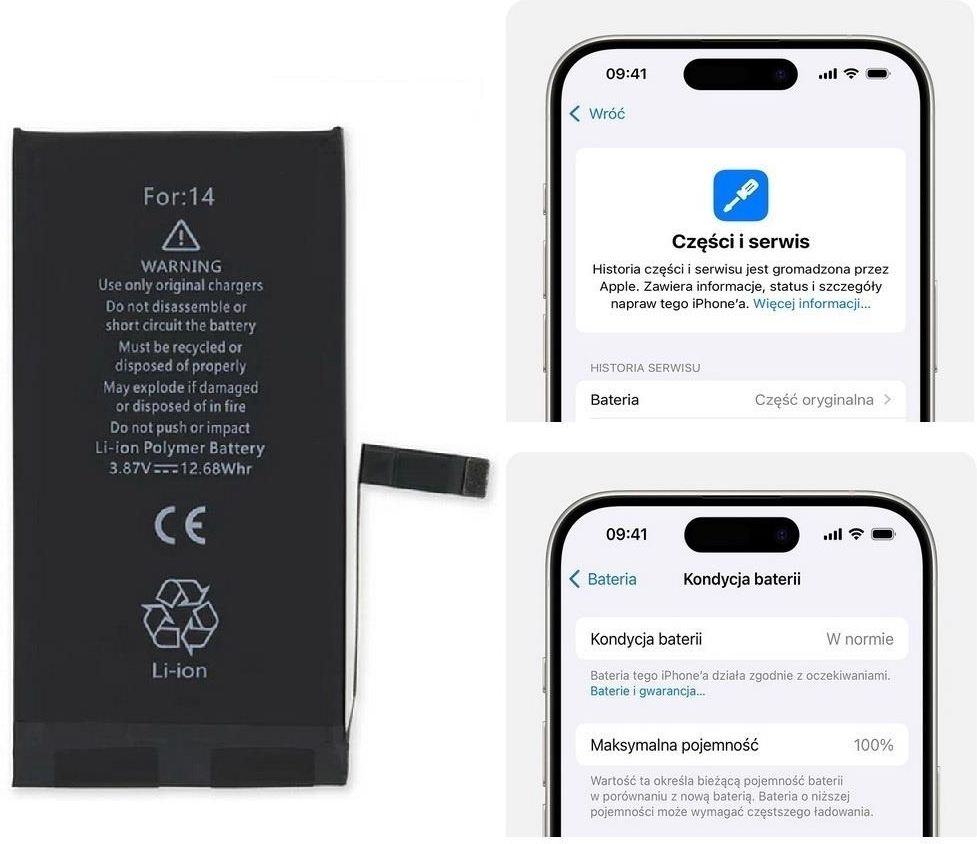 Bateria A2863 "Self-Diagnosable" do Apple iPhone 14 Najnowsza wersja baterii "Self-Diagnosable" z możliwością z możliwością przypisania jako oryginał do danego iPhone'a Dedykowany model iPhone 14 (6.1") A2649 / A2881 / A2882 / A2883 / A2884 Numer modelu baterii: A2863 Pojemność: 3279mAh Typ akumulatora: Litowo-jonowy Wersja baterii: Self-Diagnosable Wyświetlana kondycja / Battery Health: Tak (od iOS 18.1) Wyświetlana informacja o oryginalnej baterii: Tak (od iOS 18.3.2)* Stan: Fabrycznie nowy (0 cykli ładowania) Zestaw zawiera 1x Kompletna bateria "Self-Diagnosable" 1x Komplet taśm montażowych Opis i cechy produktu Najnowsza seria baterii "Self-Diagnosable" z możliwością z możliwością skonfigurowania jako oryginał do danego iPhone'a Brak potrzeby rozbierania, przenoszenia BMS, lutowania, zgrzewania, programowania aby pozbyć się komunikatu o nieznanej części Wystarczy zamontować baterię oraz przejść proces konfiguracji w ustawieniach, po czym bateria zostaje przypisana jako oryginał Po wymianie iPhone będzie rozpoznawać nową baterię jako "Oryginalna / używana", co zapewnia pełną kompatybilność z systemem Będzie również wyświetlana rzeczywista kondycja / Battery Health: 100% która będzie się zmniejszała wraz z czasem eksploatacji Posiada najwyższej jakości, nowe ogniwa litowo-jonowe o rzeczywistej pojemności, zgodnej z oznaczeniami Zapewniamy zawsze świeżą datę produkcji baterii, co gwarantuje ich niezawodność i poprawne działanie Bateria jest rozpoznawana jako oryginalna w wersji oprogramowania iOS 18.3.2. Nie ponosimy odpowiedzialności za ewentualne zmiany wprowadzone w kolejnych aktualizacjach oprogramowania przez Apple, które mogą wpłynąć na wyświetlanie funkcji przypisania baterii Instrukcja Telefon wymaga aktualizacji iOS do 18.3.2 oraz połączenia z Internetem Przy pierwszym uruchomieniu iPhone po montażu baterii, w ustawieniach pokaże się informacja o wykryciu nowej baterii i dokończeniu instalacji Kliknij w informacje lub przejdź do [Ogólne]>>[To urządzanie]>>[Części i historia serwisu] przy baterii pojawi się komunikat Zrestartuj i dokończ naprawę Kliknij przycisk, telefon zrestartuje się i przejdzie w tryb diagnostyczny Postępuj zgodnie z instrukcją, połącz się z siecią Wifi i przejdź dalej Zaakceptuj zgody, telefon rozpocznie konfiguracje. Po rozpoznaniu baterii jako oryginalnej, kliknij kontynuuj Po zakończeniu diagnostyki, kliknij restart aby telefon ponownie się uruchomił W ustawieniach bateria powinna być przypisana jako oryginalna/używana W przypadku braku możliwości połącznia z trybem diagnostycznym z ustawień, wywołaj go ręcznie: Wyłącz telefon. Naciśnij i przytrzymaj równocześnie przyciski zwiększania i zmniejszania głośności W dalszym ciągu trzymając wciśnięte przyciski, podłącz kabel zasilający do iPhone Poczekaj aż zapali się logo Apple i puść przyciski W trybie diagnostycznym postępuj zgodnie z instrukcjami