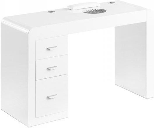 Marka ACTIVESHOP od wielu lat oferuje szeroką gamę produktów, które sprawdzają się w profesjonalnym użytku w wielu branżach. W dostępnym asortymencie można znaleźć artykuły z różnych kategorii, od drobnych, niezbędnych akcesoriów, po specjalistyczne wyposażenie. Praktyczne biurko z pochłaniaczem Funkcjonalne biurko kosmetyczne 312 z pochłaniaczem pyłu doskonale sprawdza się w salonach kosmetycznych, zwłaszcza przy stylizacji paznokci. Konstrukcja mebla zapewnia jego stabilność, a pojemne szuflady ułatwiają dostęp do niezbędnych narzędzi, co przekłada się na efektywność pracy. Doskonały sposób na idealne miejsce pracy Trzy obszerne szuflady ułatwiają organizację oraz utrzymywanie porządku w najpotrzebniejszych kosmetykach i narzędziach. Biurko wyposażone jest w praktyczny pochłaniacz, który skutecznie ogranicza ilość szkodliwego pyłu, zapewniając czyste i świeże powietrze w miejscu pracy. Jednocześnie dzięki wbudowaniu go w blat nie zajmuje cennej przestrzeni roboczej. Specjalnie zaprojektowane miejsca na kable ułatwiają organizację niezbędnych w salonie urządzeń, takich jak frezarki, lampy zabiegowe czy do paznokci, pozwalając na ukrycie przewodów. Prosty design dla pełni funkcjonalności Minimalistyczny design nadaje biurku ponadczasowej elegancji. Gładkie powierzchnie oraz subtelna kolorystyka sprawiają, że mebel jest doskonałym dodatkiem do każdego wnętrza. Zastosowane materiały wysokiej jakości nadają mu nowoczesny wygląd, zapewniając jednocześnie trwałość oraz łatwość czyszczenia. Minimalizm w formie sprawia, że biurko nie tylko ułatwia przechowywanie produktów i akcesoriów, ale także stanowi estetyczny element, który podkreśla prostotę i elegancję przestrzeni salonów kosmetycznych. Dane:Moc pochłaniacza: 24 WKolor: odcienie bieliSzafki po lewej stronie.