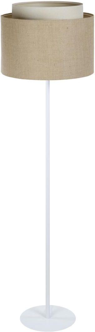 Boho lampa stojąca ASU I do salonu Lampa stojąca ASU I to produkt polski, który powstał jako uzupełnienie oświetlenia znajdującego się w salonie, sypialni, czy też w biurze. Lampa na jednej nodze nie tylko zapewni źródło światła, ale sama w sobie będzie również pełnić funkcję dekoracyjną we wnętrzu. Ta lampa podłogowa ma podstawę skonstruowaną z metalu malowanego proszkowo na biały kolor, dzięki czemu jest ona wytrzymała i stabilna. Lampa posiada wygodny włącznik nożny, dzięki któremu łatwo i szybko zapalimy światło. Opisywana lampa stojąca ma podwójny abażur o klasycznym kształcie walca zrobiony z tworzywa PCV pokrytego tkaniną jutową o beżowej barwie i kremową tkaniną lnianą. Wnętrze lampy ma kremowy kolor. Zaletą lampy stojącej ASU I jest jej duża odporność na promieniowanie UV, dzięki czemu nie traci ona swojego koloru nawet po długim czasie użytkowania. Do lampy pasują żarówki E27 o maksymalnej mocy 60 Watt - można także zastosować żarówki LED. Lampa sprzedawana jest bez żarówki. Kremowo-beżowa kolorystyka sprawia, że lampa idealnie wyglądać będzie we wnętrzach urządzonych w stylu boho oraz w stylu skandynawskim.Cechy produktuprodukt polski,nowoczesne wzornictwo,abażur wykonany z tkaniny jutowej i lnianej na tworzywie sztucznym,wnętrze lampy w kremowym kolorze,podstawa lampy z metalu malowanego proszkowo,do lampy pasuje żarówka E27 max. 60 W,brak żarówki w zestawie,przewód biały o długości 255 cm z włącznikiem nożnym,w swojej ofercie posiadamy szeroki wybór mebli pozwalających na kompleksowe wyposażenie mieszkania