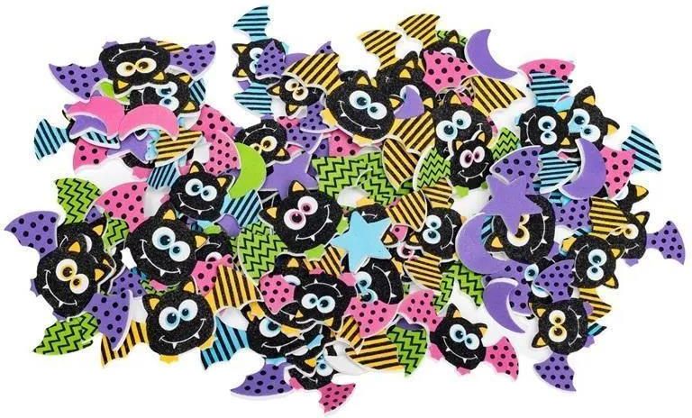 Naklejki dla dzieci HALLOWEEN kolorowe nietoperze 70szt BREWIS Dodaj odrobine strasznych i ciekawych dekoracji do swojego domu dzieki kolorowym nietoperzom. Kolorowe naklejki przedstawiają przyjazne nietoperze, idealne do udekorowania pokoju Twojego dziecka lub na przyjecie w stylu Halloween. …