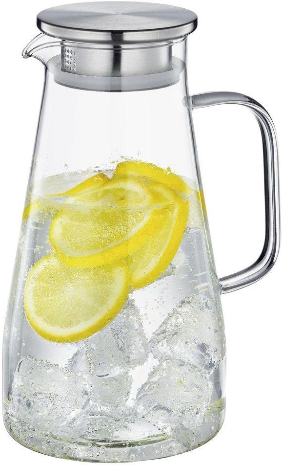 DZBANEK na WODĘ lemoniadę 1,6l Szklany Cilio 4017166291278 Dzbanek do podawania wody i zimnych napojów marki Cilio do podawania wody i zimnych napojów z dodatkami takimi jak plastry cytryny czy liście mięty dwustronna pokrywka z dużym otworem oraz z sitkiem zatrzymującym lód i kawałki owoców podczas nalewania wykonana z odpornego na wstrząsy i uszkodzenia szkła borokrzemowego Wymiary dzbanka : pojemność: 1,6 l średnica: 12,5 cm wysokość: 22,5 cm Materiał szkło borokrzemowe stal nierdzewna Producent : Cilio ( Niemcy ) CI-291278