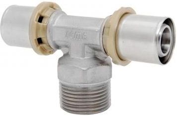 Złączka zaprasowywana PEX Rozmiar:25 - 3/4" Trójnik wkrętny Mosiądz cynowany (mosiądz pokryty cyną aby można było dystrybuować wodę pitną) Wysoka jakość wykończenia Zastosowanie: Ogrzewania podłogowego Ogrzewania ściennego Ciepłej i zimnej wody Centralnego ogrzewania Nowoczesna produkcjaProdukcja rur wielowarstwowych Duro odbywa się na liniach szwajcarskiej firmy NOKIA-MAILLEFFER. Do ich produkcji fabryka w obydwu warstwach wykorzystuje polietylen sieciowany PE-Xb z wkładką aluminiową spawaną doczołowo. Obustronne sieciowanie zapewnia w systemie Duro bezpieczne połączenie kształtki i rury w zakresie temperatur do 110°C i przy ciśnieniu do 10 barów.Brak obustronnego sieciowania w innych stosowanych w ciepłownictwie systemach powoduje zmianę konsystencji tworzywa i zagraża wysunięciem się rury z zacisku kształtki. Ważna siła zacisku W zakresach interesujących nas w ogrzewnictwie temperatur 80-110°C polietylen zmienia konsystencję na półstałą. W takich warunkach siła zacisku, a więc siła połączenia „rura-złączka”, spada drastycznie. Z punktu widzenia zastosowań w ogrzewnictwie najważniejsza informacja to ta, że dzięki sieciowaniu polietylen przestaje być termoplastem i jest odporny na przegrzewy do 110°C. Rura utrzymuje grubość ścianki pod zaciskiem złączki i połączenie pozostaje bezpieczne. Bardzo ważne jest, żeby obie warstwy rury były wykonane z polietylenu sieciowanego (PE-X), ponieważ złączka zaciska jednocześnie warstwę wewnętrzną i zewnętrzną rury wielowarstwowej.