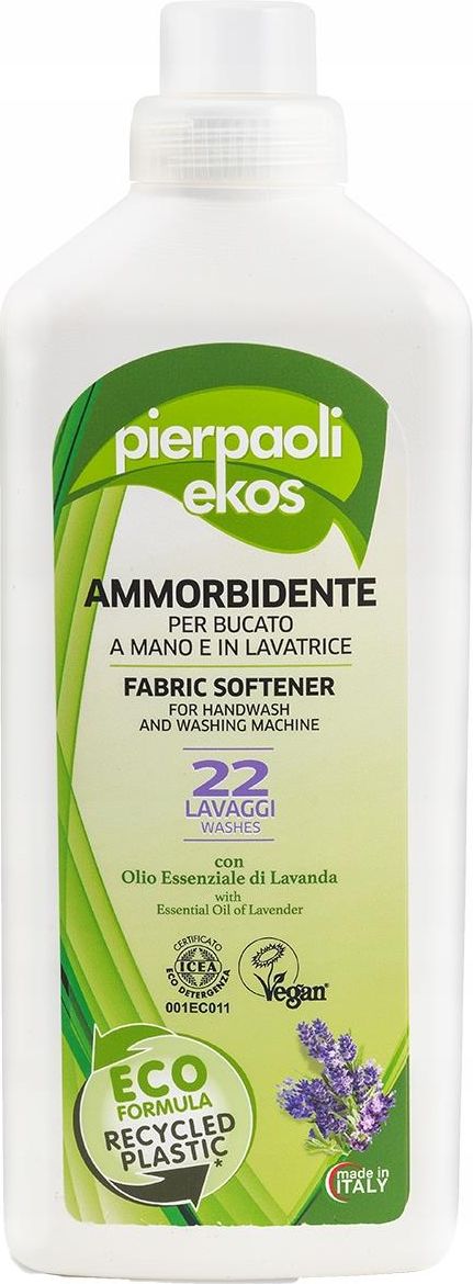 Zmiękczający płyn do płukania tkanin z dodatkiem olejku lawendowego, 1000 ml, Pierpaoli Ekos ICEA: TAK Biodegradowalny: TAK Ilość w opakowaniu zbiorczym: 12 Produkt Naturalny: TAK Zapach Naturalny: TAK Przebadany na skórze wrażliwej: TAK Przebadany na NI CH i K: TAK Łagodne składniki myjące: TAK …