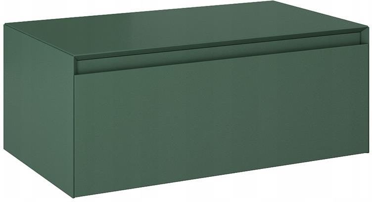Elita SPLIT SLIM 80 Komoda S1 z blatem Zielona 168936 Szerokość: 80 Głębokość 45,8 Wysokość 31,9 Kolor: Zielony Wykończenie lakierowany Mat 1 szuflada Sposób montażu: wiszący front i korpus wykonany z płyty MDF 16mm blat wykonany z płyty MDF 16mm, blat nie jest przystosowany do wykonywania otworu pod umywalki i baterie komoda jest produktem samodzielnym do konfiguracji z konsolą lub umywalką ścienną, nie należy łączyć jej z szafkami SPLIT szuflady pełne bez wycięcia pod syfon, prowadnice soft-close, pełen wysuw cienkie stalowe boki szuflady o grubości 13mm 2 zawieszki metalowe o łącznym udźwigu 240kg Komoda Split SLIM 80 cm z blatem, zaopatrzona w 1 szufladę z metalowymi bokami, pełnym wysuwem i systemem soft - close. Szafka wykonana z materiałów wysokiej jakości, front i korpus z płyty laminowanej, lakierowanej w kolorze forest green mat. Frezowane uchwyty wyprofilowane pod kątem 45°.