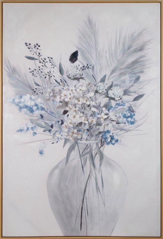 Obraz 614/A 80x120 cm kwiaty w wazonie Ręcznie malowany na płótnie Obraz BUKIET, rozmiar 80x120 cm Najważniejsze cechy Materiały: Drewno, Płótno, Plastik Odcienie: biały, szary Kształt: prostokątny Wzór: kwiecisty Przeznaczenie: do wnętrz SKU: 440405 Marka: EUROFIRANY B.B. Choczyńscy Sp.J. Za co pokochasz ❤️❤️❤️ nasz produkt Ręcznie malowany na płótnie obraz BUKIET zaskakuje nowoczesną formą. Obraz ukazuje oryginalny bukiet w wazonie złożony z gałązek z drobnymi pąkami i ozdobną trawą. Malowidło utrzymane jest w tonacji srebra, szarości i odcieni błękitu. Obraz jest gotowy do powieszenia na ścianie, płótno jest oprawione w subtelną ramę i nie wymaga oprawy. Obraz pasuje zarówno do wnętrz klasycznych, jak i do pomieszczeń o typowo nowoczesnym charakterze, zwłaszcza tych urządzonych w prostym, minimalistycznym stylu. Kolory produktów widoczne na zdjęciach mogą się nieznacznie różnić od rzeczywistych, wynika to z indywidualnych ustawień ekranu na którym przeglądasz galerię produktu. Wymiary i waga produktu Wysokość całkowita: 120 cm Szerokość całkowita: 80 cm Waga: 2.8 kg Wymiary opakowania Szerokość opakowania: 90 cm Wysokość opakowania: 130 cm Głębokość opakowania: 5 cm Ilość paczek: 1