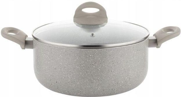 Garnek aluminiowy Sandy Florina 20 cm 2,4 l Producent: Florina Kod produktu: 342813 Wybór odpowiednich garnków może wydawać się błahym problemem, jednak my wiemy, że garnki muszą być Twoimi przyjaciółmi, a nie wrogami. Żeby tak się stało, muszą one spełniać kilka ważnych oczekiwań: być funkcjonalne, wygodne, trwałe i łatwe w utrzymaniu czystości. Garnki Sandy spełniają te wszystkie warunki, a przy okazji są również niezwykle piękne, dzięki czemu staną się one również ozdobą Twojej kuchni (mamy nadzieję, że użyteczną ozdobą). Garnek Sandy posiada nienagrzewający się uchwyt, który doskonale komponuje się z powłoką nieprzywierającą. Dopasowana szklana pokrywka pozwoli Ci na bezpieczne kontrolowanie przygotowywanych posiłków, bez konieczności podnoszenia jej. Powłoka garnka zapobiega przywieraniu smażonych potraw, oraz pozwoli Ci na ograniczenie tłuszczu, który normalnie jest potrzebny do smażenia. Dzięki garnkowi Sandy Twoje posiłki będą smaczne i zdrowe. Jak widzisz garnek ten jest stworzony do tego, aby stać się nieodłącznym elementem wyposażenia Twojej kuchni. Cechy produktu garnek aluminiowy Sandy, pokryty został powłoką nieprzywierającą, powłoka ta zapobiega przywieraniu potraw do garnków i patelni, nawet podczas smażenia z małą ilością tłuszczu, dzięki niej zminimalizujesz ilość tłuszczu potrzebnego do smażenia, Twoje potrawy pozostaną smaczne i zdrowe, zewnętrzna powłoka odporna jest na wysokie temperatury, uchwyty pokryte powłoką Soft Touch pozwolą Ci na bezpieczne i wygodne przenoszenie garnków, do garnka dołączona została dopasowana szklana pokrywa, doskonale sprawdzi się na wszystkich rodzajach kuchenek, włącznie z indukcją, dno nagrzewa się szybko i równomiernie, dzięki czemu oszczędzisz energię potrzebną do przygotowania posiłków, aby garnek służył Ci dłużej producent zaleca ręczne mycie, garnek oprócz swej funkcjonalności jest również niezwykle piękny, doskonale sprawdzi się w każdej kuchni. Wymiary produktu średnica 20 cm, pojemność 2,4 l, wysokość 9 cm.