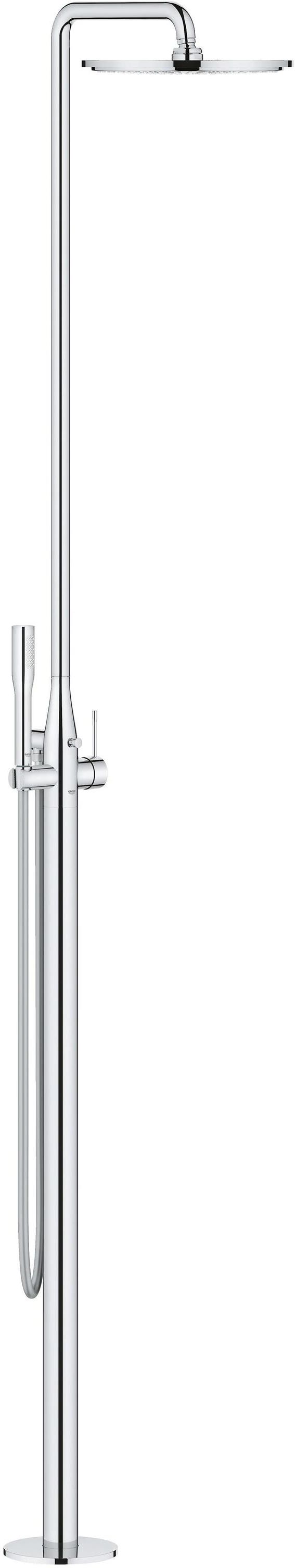 Grohe GROHE Essence - wolnostojący system natryskowy Wolnostojący system natryskowy GROHE Essence to idealny wybór dla osób poszukujących niestandardowych rozwiązań do pokojów kąpielowych. Zwieńczono go diamentowo lśniącą i odporną na zarysowania powłoką StarLight®, dzięki czemu perfekcyjnie …