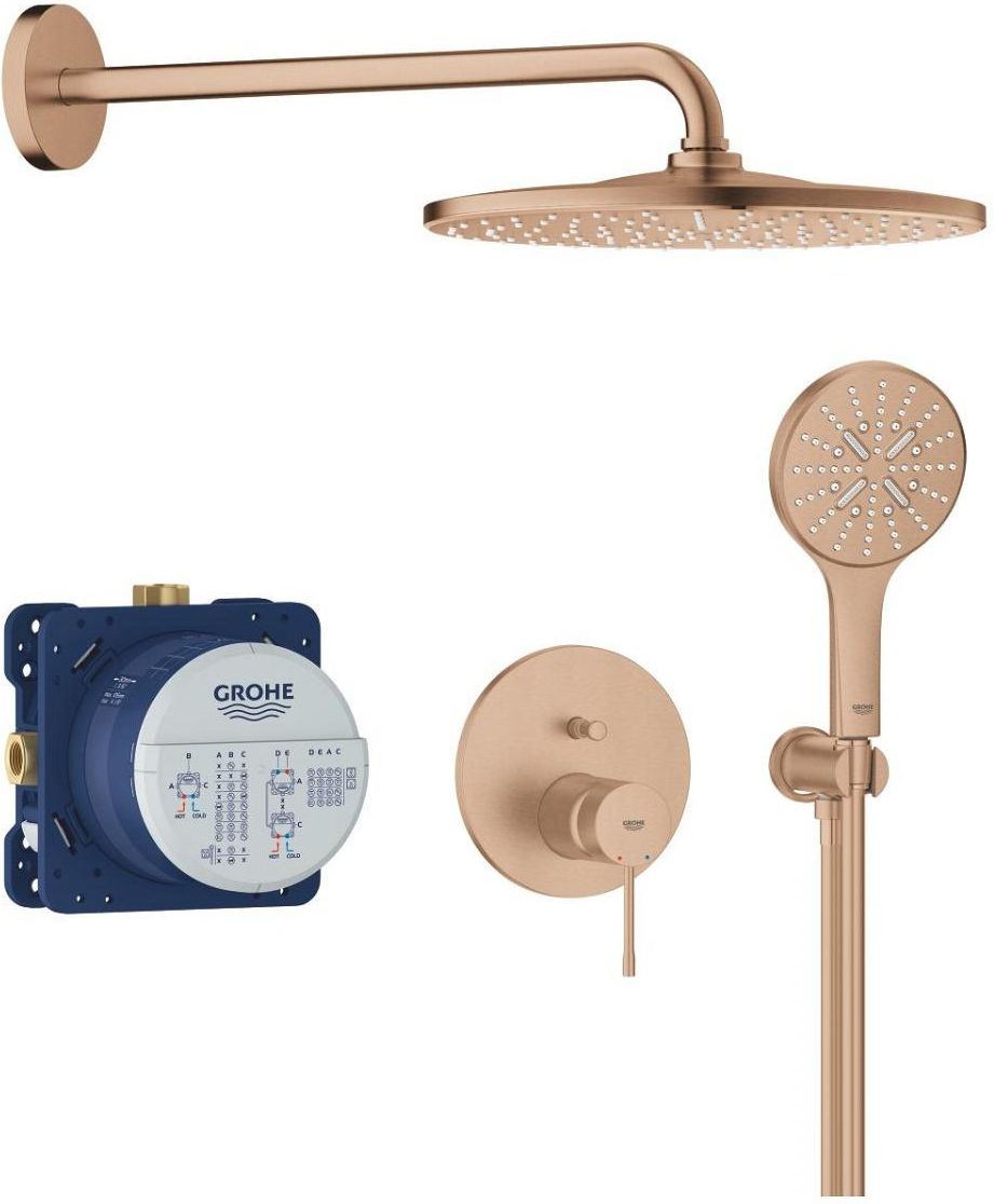 Grohe GroheEssence Z Rainshower Mono 310 25287DL0 Zestaw prysznicowy GroheEssence Z Rainshower Mono 310 to nie tylko element wyposażenia łazienki, ale również kluczowy aspekt codziennej higieny, który wpływa na jakość naszego życia. Ten model łączy elegancję z funkcjonalnością, czyniąc każdą kąpiel przyjemnością. W dalszej części przybliżamy szczegóły, które sprawiają, że ten produkt jest doskonałym wyborem dla osób ceniących sobie komfort i styl. Wymiary i regulacja wysokości Zestaw prysznicowy GroheEssence Z Rainshower Mono 310 charakteryzuje się deszczownicą o średnicy 310 mm, co zapewnia obszerną powierzchnię do kąpieli. Dodatkowo, długość drążka oraz węża są dostosowane do standardowych wymiarów, co podnosi ergonomię użytkowania. Możliwość regulacji wysokości drążka sprawia, że każdy domownik może dostosować go do swoich indywidualnych potrzeb, co jest istotne, zwłaszcza w rodzinach z dziećmi. Materiał wykonania i wykończenie Pod względem materiałów, zestaw wykonany jest z metalu oraz tworzywa sztucznego, co zapewnia odporność na korozję oraz długotrwałe użytkowanie. Złoty kolor nadaje całości elegancki i luksusowy wygląd, co sprawia, że każda kąpiel nabiera wyjątkowego stylu. Ponadto, produkt jest łatwy w czyszczeniu, co ułatwia jego codzienną konserwację i pozwala cieszyć się estetyką przez długi czas. Rodzaj montażu i kompatybilność Zestaw GroheEssence Z Rainshower Mono 310 jest przeznaczony do montażu natynkowego, co sprawia, że można go łatwo zainstalować w większości standardowych łazienek. Jego uniwersalna kompatybilność z istniejącą instalacją pozwala uniknąć skomplikowanych prac remontowych, co z pewnością ułatwia decyzję o wyborze tego modelu. Funkcje dodatkowe i rodzaje strumienia wody Funkcje dodatkowe dostępne w tym zestawie prysznicowym są niezwykle istotne dla komfortu użytkowania, ponieważ pozwalają na dostosowanie doświadczenia kąpieli do indywidualnych preferencji. Wśród najważniejszych funkcji można wymienić: Funkcję regulacji strumienia wody, umożliwiająca dostosowanie intensywności wody do indywidualnych preferencji, Tryb deszczowy, który daje uczucie orzeźwienia i relaksacji, przypominając naturalny deszcz, System antykamienny, który zapobiega osadzaniu się kamienia na dyszach prysznica, co ułatwia utrzymanie go w czystości, Funkcję oszczędzania wody, co jest korzystne zarówno dla portfela, jak i dla środowiska, Możliwość ustawienia strumienia w postaci mgiełki, idealnej do delikatnego nawilżania skóry. Typ zestawu prysznicowego Model GroheEssence Z Rainshower Mono 310 to klasyczny wybór z deszczownicą, który doskonale wpisuje się w nowoczesne aranżacje łazienkowe. Dzięki swojemu wykończeniu i funkcjonalności, każda kąpiel zamienia się w relaksujący rytuał, zachęcając do codziennych chwil odprężenia.