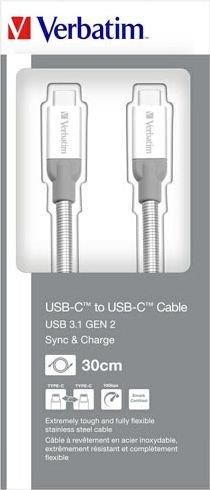 Kabel USB Verbatim KABEL USB-C M/M 3.1 GEN 2 0.3M SREBRNY VERBATIM Szczecin