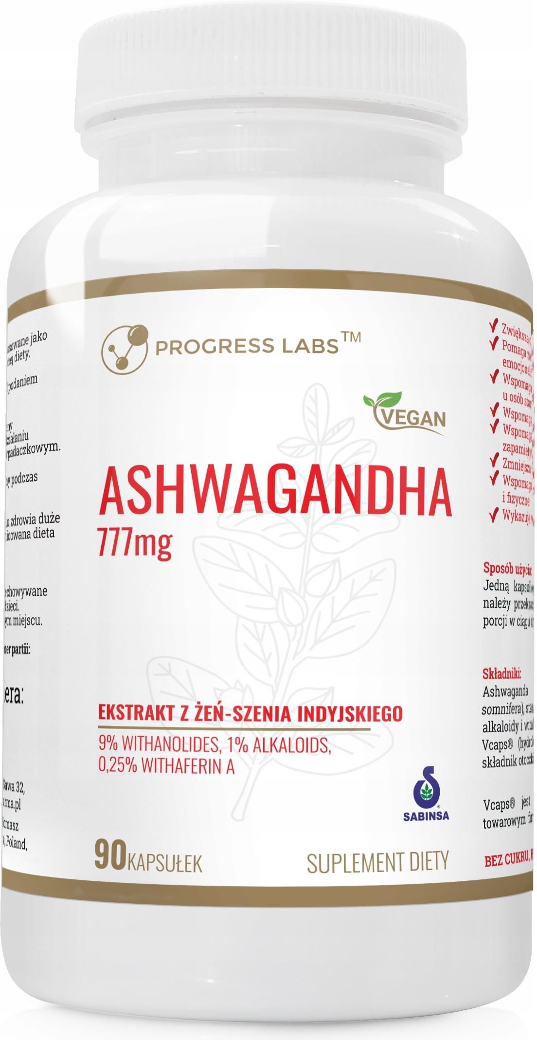 Kapsułki Progress Labs Ashwagandha 777mg Silny Ekstrakt 9% 90szt. Szczecin