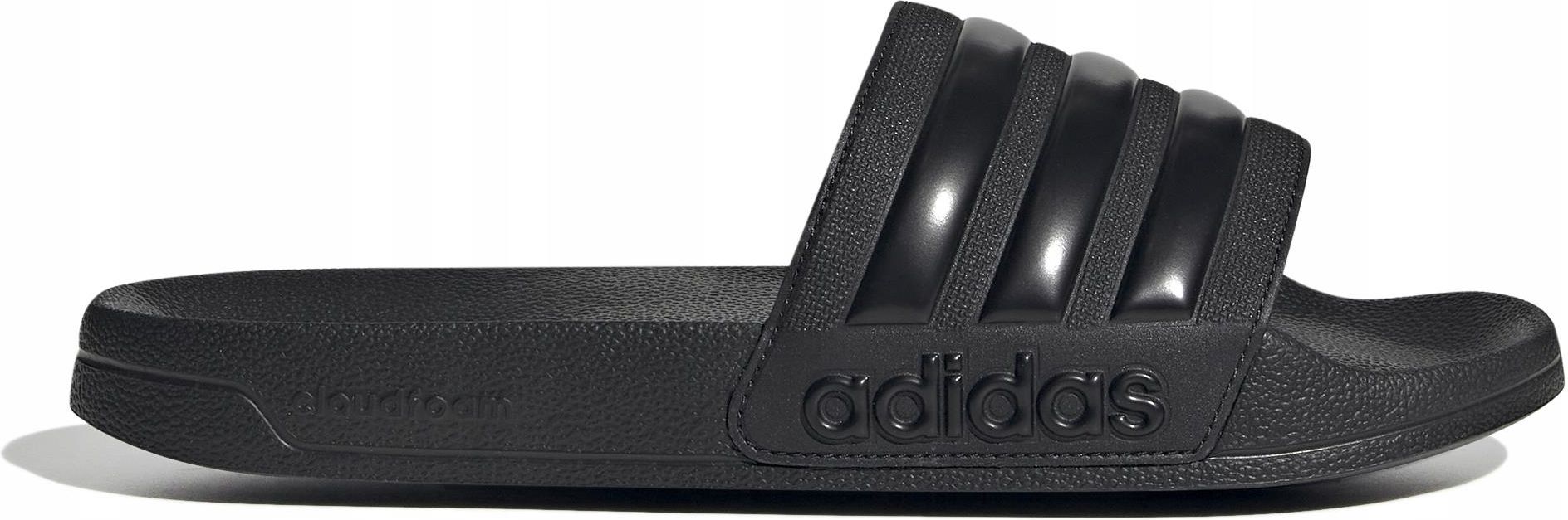 Klapki adidas łączą w sobie kultowy styl i sportową funkcjonalność. Szybkoschnąca, wsuwana konstrukcja zapewnia wytrzymałość i tworzy praktyczne obuwie na basen, plażę czy też pod prysznic po ciężkim treningu. Pojedynczy pasek tworzy komfortową cholewkę, która utrzymuje stopę bez ryzyka otarć i podrażnień. Podeszwa środkowa Cloudfoam dba o amortyzację, a syntetyczne wykończenie podeszwy zewnętrznej sprawdzi się na śliskich powierzchniach. Czarny kolor z trzema paskami tworzy ponadczasowy design w modnym wydaniu. Klapki dbają o stylowy komfort stóp po wyczerpującym treningu i w trakcie letniego wypoczynku.