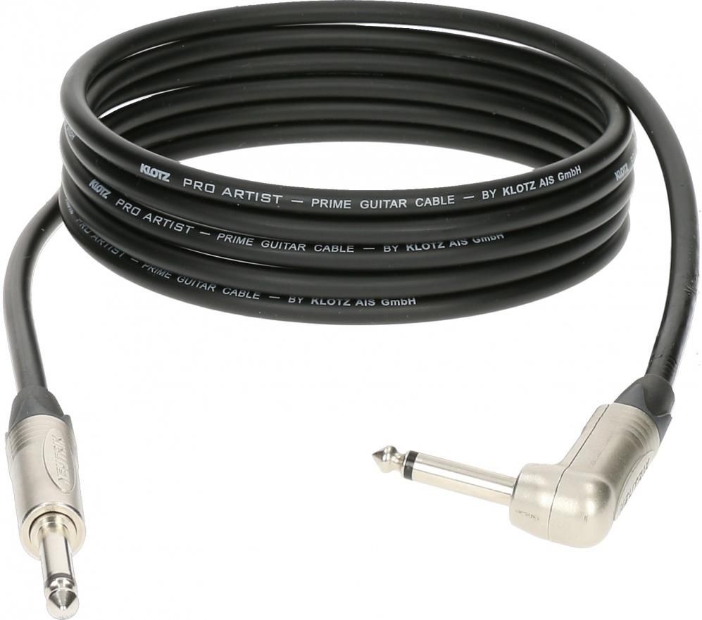 Klotz Pro Artist PRON090PR – kabel instrumentalny 9 m kątowy Specyfikacja: Typ kabla: instrumentalny Seria: Pro Artist Kategoria: Professional Guitar Długość: 9 m Wtyki: 1 x 6,3 mm jack mono prosty (Neutrik), 1 x 6,3 mm jack mono kątowy (Neutrik) Typ kabla: Pro Artist, Ø 6,5 mm Pojemność: 95 pF/m Styki: niklowane Podwójny ekran chroniący przez interferencjami sygnałów (miedziany, spiralny + przewodzący plastik) Powłoka zewnętrzna: PVC Bardzo elastyczny i wytrzymały Kolor: czarny