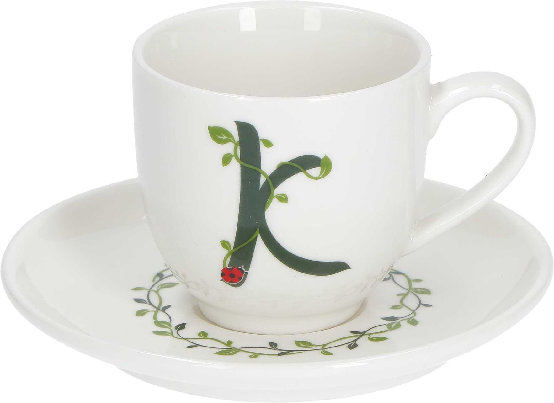 Filiżanka ze spodkiem "K" o pojemności 90 ml Solotua to prawdziwa perełka w świecie porcelany. To delikatna i elegancka filiżanka z literą.