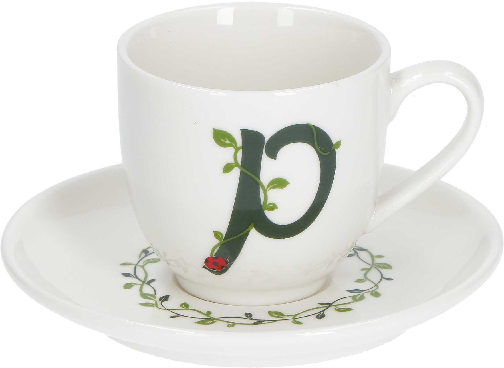Filiżanka ze spodkiem "P" o pojemności 90 ml Solotua to prawdziwa perełka w świecie porcelany. To delikatna i elegancka filiżanka z literą.