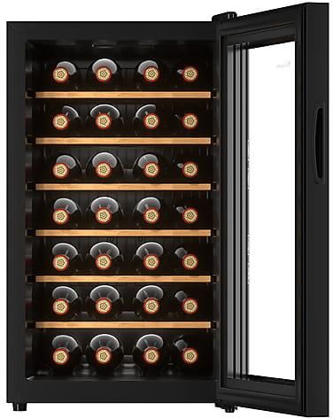 - Rodzaj: wolnostojąca - Wysokość: 74.2 cm - Szerokość: 43 cm - Głębokość: 49 cm - Strefy chłodzenia: 1 - Liczba butelek: 28 szt - Klasa energetyczna: F - Poziom hałasu: 21 dB - Montaż drzwi: prawostronny - Zmiana kierunku drzwi: nie - Liczba półek: 6 szt