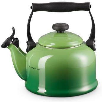 Czajnik stalowy emaliowany Traditional francuskiej firmy Le Creuset. Wewnątrz czajnik jest pokryty emalią umożliwiającą łatwe czyszczenie. Czajniki Le Creuset Traditional wyposażone są w nienagrzewającą się rączkę i podnoszony mocowany na stałe do dziubka gwizdek. Czajnik jest przystosowany do gotowania na wszystkich rodzajach kuchni, także na indukcyjnych. Pojemność: 2,10 L Kolor: bamboo green