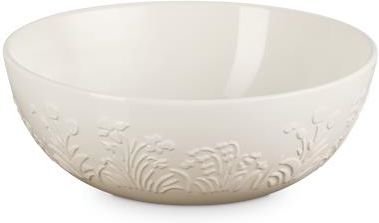 Le Creuset Miska na Sałatki 25 cm Jardin Meringue Kolekcja Le Creuset Jardin to inspirowana ogrodem ceramika i żeliwo z delikatnymi kwiatowymi wzorami w kolorach Sea Salt, Meringue i Shell Pink, łączące w sobie codzienną funkcjonalność z elegancką estetyką i najwyższą trwałością. Klasyczne, wiosenne kwiaty takie jak tulipany i żonkile delikatnie ozdabiają naczynia. Średnica: 25 cm Materiał: kamionka Kolor: Meringe