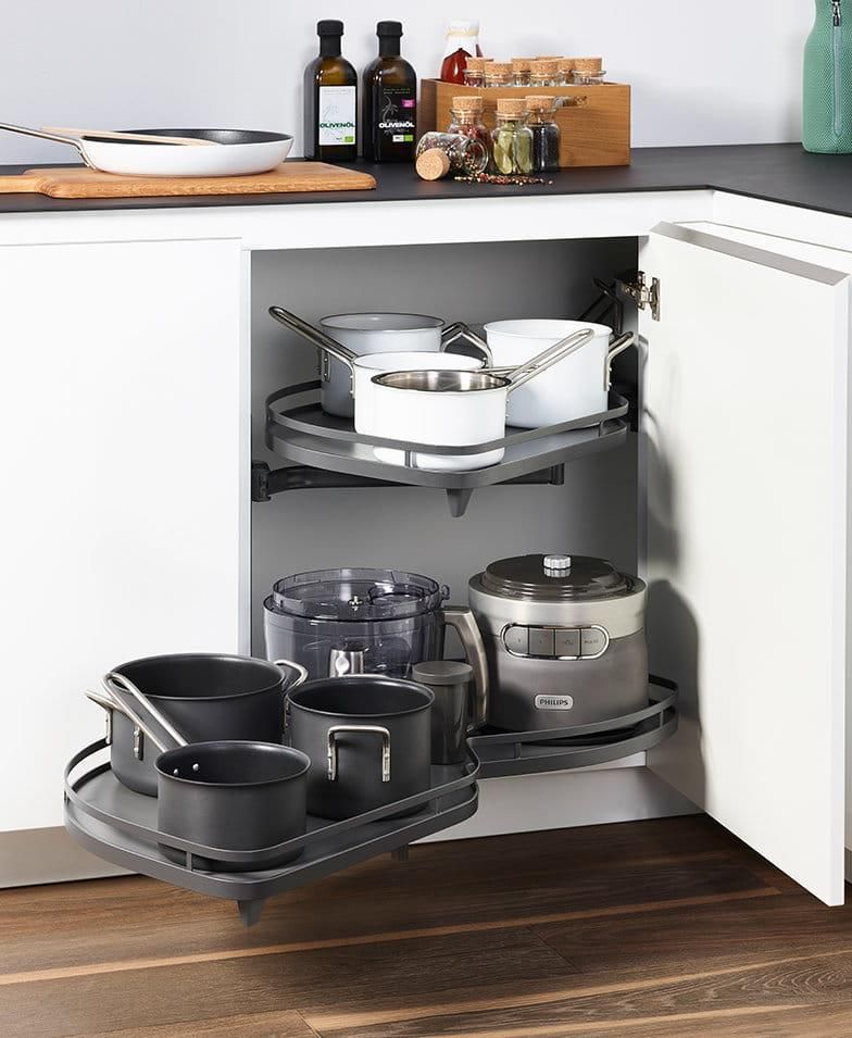 Peka 005.407.KPL/A - LeMans II ARENA Style 600/ prawy/ antracyt 5901554245259 LeMans II ARENA Style 600/ prawy/ antracyt dwie półki górna i dolna poruszają się niezależnie od siebie, a po otwarciu szafki całkowicie wysuwają się na zewnątrz LeMans II to okucie meblowe w którym dwie ruchome półki …