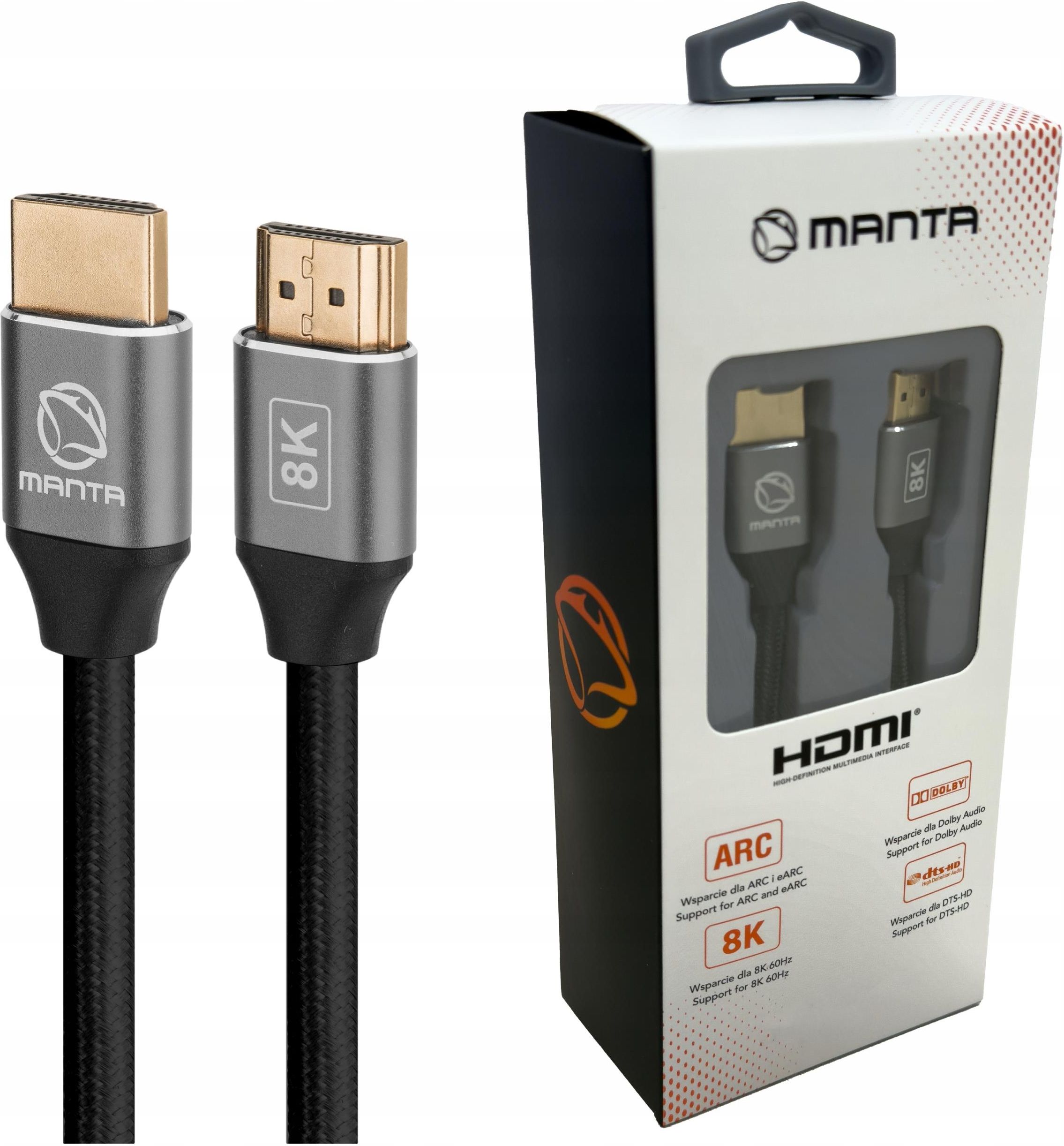 Manta Przewód Hdmi-hdmi 1,5 Metra 2.1 Certyfikat 8K Hdr Arc (HDMI15MC) Szczecin