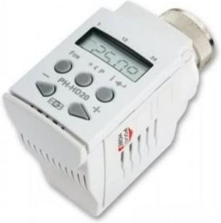Bezprzewodowa głowica na kaloryfer Jako odbiornik peryferyjny steruje zaworem na kaloryferze. Może pracować autonomicznie (według własnego programu) lub być zarządzana radiowo przez centralna jednostkę. Głowica dokonuje pomiaru temperatury w pomieszczeniu i porównując go z programem otwiera lub zamyka zawór kaloryfera. Informacje o pozycji zaworu, danych temperaturowych, stanie baterii przekazuje do centralnej jednostki. Funkcje: automatyczna adaptacja do pozycji zaworu indykacja stopnia otwarcia zaworu w % możliwość krótkotrwałej zmiany temperatury automatyczna ochrona przed zakamienianiem zaworu ochroma przeciw zamarzaniu indykacja słabej baterii blokada klawiatury Może być nadzorowany przez jednostką centralną CJ37-BT, PH-CJ37-GST lub podstacje PH-BHD Dane techniczne: Zasilanie: 2 x 1,5 V alkal. R6/AA Typ komunikacji: dwustronna Frekwencja: 433,92 MHz Zasięg: 300m na wolnej przestrz., 35m w zabudowie Pasuje do zaworówPH-HD03 bez redukcji (gwint M30x1,5): HONEYWELL HEIMEIER VAC JUNKERS KORADO PURMO (zgodny z HEIMEIER, KORADO) SIEMENS KERMI DIANORM RADSON DELONGHI PH-HD03 z redukcją HERZ (gwint M28x1,5) DANFOSS (gwintM28x1,5) UNIVA (zgodny z HERZ) (gwint M28x1,5) COTERM (gwint M28x1,5) MYJAVA (gwint M28x1,5) DANFOSS RTD (gwint M30x1,5) Dla nowych typów OVENTROP a ENBRA (M30x1,5) redukcja nie jest potrzebna.