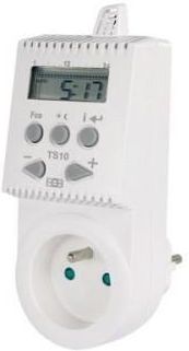 Termostat gniazdkowy TS10 służy do automatycznej regulacji temperatury w domach, mieszkaniach, biurach. Na każdy dzień tygodnia można nastawić 4 dowolne pasma czasowe. Zalety termo wyłącznika gniazdkowego TS10: czujnik otwartego okna zgodność z normą EcoDesign na każdy dzień inny cieplny program dwa ustawienia temperatury (komfortowy, ekonomiczny) prosta obsługa i programowanie możliwość krótkoterminowych zmian temperatury stałe wyłączenie urządzenia (OFF) regulacja temperatury po 0,5°C przejrzysty wyświetlacz podtrzymanie ustawień przy braku zasilania Regulacja temperatury termostatu gniazdkowego: Rozwiązania dla ELEKTRYCZNYCH systemów grzewczych (konwektory, grzejniki, drabinki, płyty grzewcze itp.). Automatyczna regulacja temperatury pozwala zaoszczędzić do 30% energii. Do wykorzystania w domu, biurze, itp. Przystosowany do 4 zmian temperatury w ciągu dnia. Nastawioną temperaturę zachowuje pamięć E-EPROM przy awarii zasilania lub wyjęcia z gniazda. Dane Techniczne: Zasilanie: 230,0 V / 50 Hz Histereza: 0,5°C Liczba temper. na dzień 4 zmiany Zakres regulacji temperatury: 3 °C do 40 °C Ustawienie temperatury: 0,5 °C Dokładność: ±1°C Min. skok indykacyjny: 0,5 °C Element przełączający: przekaźnik Wyjście: 16 A Stopień ochrony: IP20 Akumulator: NiMh 2,4 V/ >100 hod. Gwarancja: 24 miesiące
