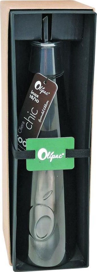 Butelka na OLIWĘ 500ml CHIC w pudełku prezentowym 8007331009780 Butelka na oliwę Olipac Chic Gunmetal 0,5l Butelka na oliwę Chic GUNMETAL o pojemności 500ml ze stali nierdzewnej, charakteryzuje się urzekającym wyglądem. Została wyposażona w praktyczny nalewak zapobiegający kapaniu i pomagający w kontrolowaniu przepływu oliwy. Jej wydłużony kształt pozwala na jej łatwe uchwycenie. Stal nierdzewna jest materiałem zdolnym do zachowania organoleptycznych właściwości oliwy wraz z upływem czasu poprzez zagwarantowanie maksymalnej ochrony przed światłem, powietrzem oraz zapachami, zapobiegając utlenianiu oraz pozostałym procesom degradacyjnym. Butelka zapakowana w pudełko prezentowe. Można myć w zmywarce. Informacje o produkcie Materiał: stal nierdzewna Pojemność: 0,5l Wymiary brutto: 29,2 x 8 x 8 cm Waga: 0,373kg Marka: Olipac (Włochy)