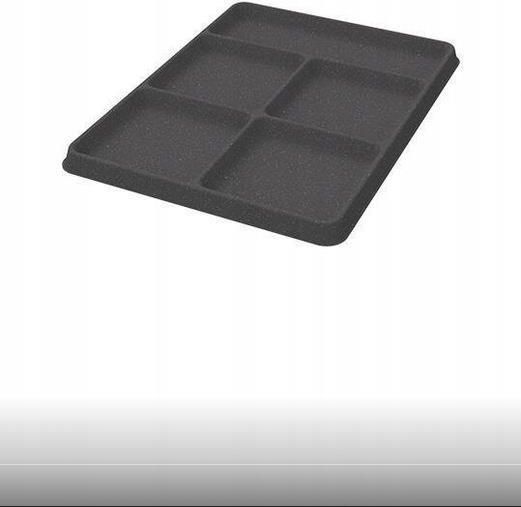 PEKA 15.4404.05 - CONERO - organizer na akcesoria/ mały/ flock 4027655139899 CONERO - organizer na akcesoria/ mały/ flock aksamitna tacka do przechowywania biżuterii i drobnych akcesoriów Conero - to organizer na cenne drobiazgi, wąskie paski czy modne okulary, w kształcie zbliżonym do kwadratu, który został opracowany przez firmę Kesseböhmer jako doposażenie niskich szuflad garderobianych, szczególnie w systemach Conero. Jest to tacka wykończona flokiem o nowoczesnej, gładkiej i zamszowej powierzchni, w kolorze pudrowej czerni o wymiarach 223 x 295 x45 mm. Powierzchnia flokowa tacki to unikalna struktura zapewniająca nie tylko doskonałą przyczepność, która chroni umieszczoną biżuterię i inne drobne przedmioty przed uszkodzeniem, ale także nadająca wnętrzu szuflady wyjątkowy charakter i wygląd. Organizer podzielony jest na 5 przestrzeni. Tacka ułatwia organizację i przechowywanie drobnych dodatków i wrażliwych przedmiotów o delikatnym wykończeniu. Tackę można zestawiać z innymi tackami folkowymi. Specyfikacja produktu: szerokość: 223 mm, długość: 295 mm, wysokość: 14 mm, kolor: flok czarno-szary 7817, produkt niemiecki, marka: KESSEBÖHMER. Proponujemy, aby flokowy organizer na biżuterię zawsze połączyć z matami flokowanymi które są szczególnie dedykowane do przechowywania delikatnych i wrażliwych przedmiotów. Parametry techniczne Wykończenie Kolor czarny Wersja mały Opcja na akcesoria Wymiary Wymiary 223 x 295 x 14 mm 15.4404.05