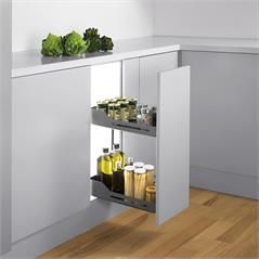 SNELLO 300/ szary 04.803.S Wyciąg podblatowy przystosowany do szafki o szerokości drzwiczek 300 mm. Do tego cargo nie potrzeba zawiasów, gdyż posiada mocowanie frontu. Wyciągi linii LIBELL to innowacyjne rozwiązanie – zamiast drucianych koszy, są wykonane ze specjalnie ukształtowanej blachy. Półki …