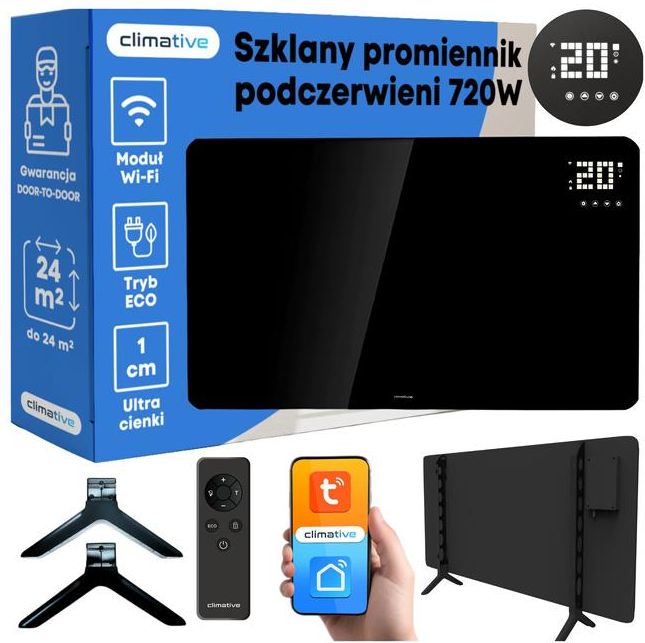 Szklany grzejnik na podczerwień promiennik PrimeHeat 720W WiFi Tuya pilot ✔️ Moc grzewcza 720 W – skuteczne i ekonomiczne ogrzewanie pomieszczeń do 24 m² ✔️ Energooszczędna technologia grzewcza – ogrzewa ludzi i przedmioty, a nie powietrze ✔️ Element grzewczy z kryształu węgla – równomierne …