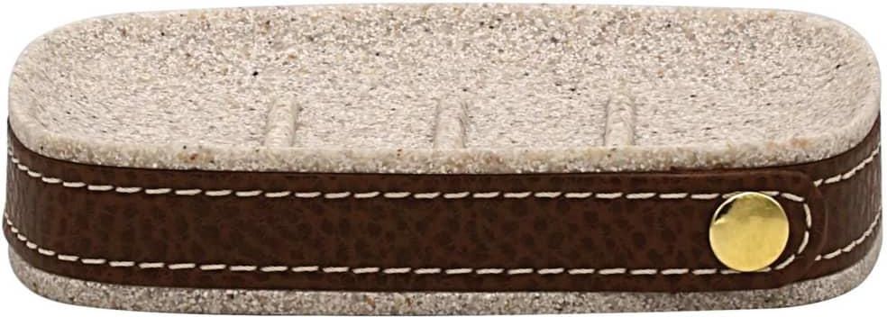 Mydelniczka Superior marki RIDDER to produkt więcej niż tylko funkcjonalny. Ta mała rzecz doda Twojej łazience odrobiny elegancji dzięki swojemu naturalnemu i stylowemu wyglądowi. Przyciągający wzrok dodatek wykonano z wysokiej jakości piliżywicy, dzięki czemu jest łatwy w utrzymaniu. Ta mydelniczka o rustykalnej powierzchni jest ozdobiona brązowym paskiem ze sztucznej skóry i udekorowana małym detalem w formie guzika w złotym kolorze. Została stworzona by stać się ozdobą wymarzonej łazienki. Dodatkowo, możesz dopasować ten przedmiot do innych akcesoriów łazienkowych z kolekcji RIDDER, w skład której wchodzą praktyczne i modne produkty do codziennego użytku, w kolorach odpornych na promieniowanie UV i charakteryzujące się długą żywotnością. Uwaga: produkt należy czyści wyłącznie komercyjnie dostępnymi produktami do czyszczenia oraz dezynfekcji.