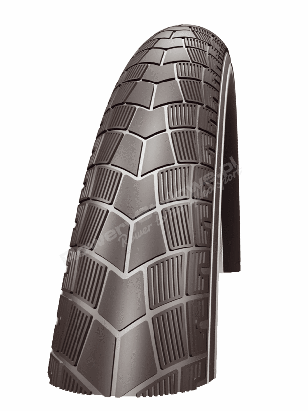 Opona Schwalbe Big Apple 20x2.15 RG LS Reflex Specyfikacja: Producent: Schwalbe Model: Big Apple HS 430 Linia jakościowa: Perfomance Rozmiar: 20" x 2.15 (ETRTO 55-406) Waga katalogowa: 530g Wersja wykonania: Drutowa, Endurance, Performance, LiteSkin, RaceGuard, Reflex E-Bike Ready: 25 km/h Mieszanka gumy: Endurance Wersja kolorystyczna: Czarna-Reflex Ścianki boczne "Skin": Lite Maksymalne ciśnienie: 2.5 - 5.0 Bar (35 - 70 psi) Oplot: 67 EPI Dopuszczalne obciążenie opony: 95 kg Poziom zabezpieczenia antyprzebiciowego: 4 Dedykowane modele dętek Schwalbe: 7, 7C Opona rowerowa Schwalbe Big Apple to kompozycja wykonan specjalnie pod jazdę Balloonbike, opna oferuje wygodną i komfortowa jazdę bez skomplikowanych rozwiązań technologicznych. Charakterystyczna dla opony Big Apple poduszka powietrzna działa jak naturalna amortyzacja. Przy ciśnieniu ok. 2 barów Balloonbike toczy się niezwykle lekko z pełny wykorzystaniem amortyzacji opony. To idealna propozycja dla wszystkich którzy chcą w wygodny i przyjemny sposób podróżować po miejskich uliczkach. Producent: Schwalbe Symbol: 4450_20 x 2.15 Kod producenta: 11100303