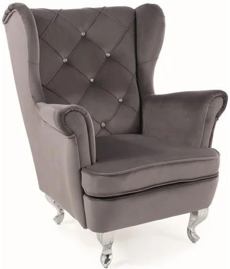 Mały fotel uszak dla dzieci LILI VELVET w stylu glamour Fotel uszak dla dzieci LILI VELVET to świetny dodatek do pokoju dziecka, który upiększy wnętrze i zapewni wygodne miejsce do siedzenia dla pociechy. Fotelik dziecięcy tapicerowany jest miękką i miłą w dotyku tkaniną welurową o szarej barwie. Aksamit jest materiałem, który delikatnie połyskuje w świetle słonecznym, a jego piękno podkreślono za pomocą pikowań wykończonych błyszczącymi guziczkami. Charakterystyczną cechą fotela są uszy znajdujące się po bokach oparcia w górnej jego części. To właśnie dzięki nim fotel nazywany jest uszakiem. Oparcie fotela dla dzieci wypełnione jest pianką, natomiast siedzisko łączy w sobie sprężyny faliste, elastyczne pasy oraz piankę tapicerską o grubości 10 cm. Takie połączenie materiałów sprawia, że fotel uszak dla dzieci LILI VELVET jest bardzo wygodny. Nogi fotela zrobione zostały z metalu o srebrnej barwie, co dodatkowo podkreśla elegancki wygląd mebla.Cechy produktumały fotel uszak dla dzieci,fotel tapicerowany tkaniną aksamitną w kolorze szarym,oparcie pikowane wykończone błyszczącymi guziczkami,nogi z metalu o srebrnej barwie,fotel nie wymaga montażu,bezproblemowy zwrot aż do 30 dni,w swojej ofercie posiadamy szeroki wybór akcesoriów pozwalających na kompleksowe wyposażenie mieszkania.