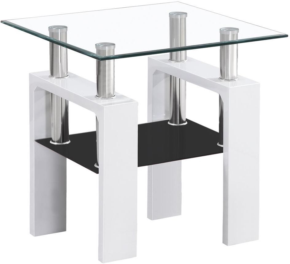 Ława LISA D firmy SIGNAL Nowoczesna ława LISA D o niebanalnej i ciekawej konstrukcji łączy w sobie trzy elementy: płytę MDF lakierowaną na biało, szkło hartowane oraz metal. Mimo że trudno nazwać ją prostą, dzięki zastosowaniu ultranowoczesnych materiałów sprawia wrażenie minimalistycznej, dlatego świetnie będzie wyglądała z nieskomplikowanymi w formie meblami. Z kolei bardziej tradycyjne wyposażenie wnętrza stonuje nieco jej industrialny charakter i pozwoli na wprowadzenie do pomieszczenia nieco nowoczesności. LISA D oferowana jest w wielu wariantach kolorystycznych. Wykończenie płyty MDF dostępne jest w czarnym i białym lakierze, barwie betonu, czereśni, venge i dębu sonoma. Mebel w paczkach przeznaczony do samodzielnego montażu (akcesoria montażowe wraz z czytelną instrukcją w komplecie). Dostępna w kolorze blat: transparentny półka: czarna stelaż: biały lakier Ława dostępna jest w innym kolorze blat: transparentny / półka: czarny / stelaż: beton blat: transparentny / półka: czarny / stelaż: venge blat: transparentny / półka: mleczny / stelaż: biały lakier blat czarny / półka:czarna / stelaż: czarny lakier blat czarny / półka: czarna / stelaż: czarny lakier Ława w innym kolorze dostępna jest na innych aukcjach. Wymiary: szerokość: 60cm głębokość: 60cm wysokość: 55cm Ława dostępna również w rozmiarze: 110x60x55cm, na innych naszych aukcjach Materiał blat/półka: szkło hartowane stelaż: płyta MDF GALERIA ZDJĘĆ